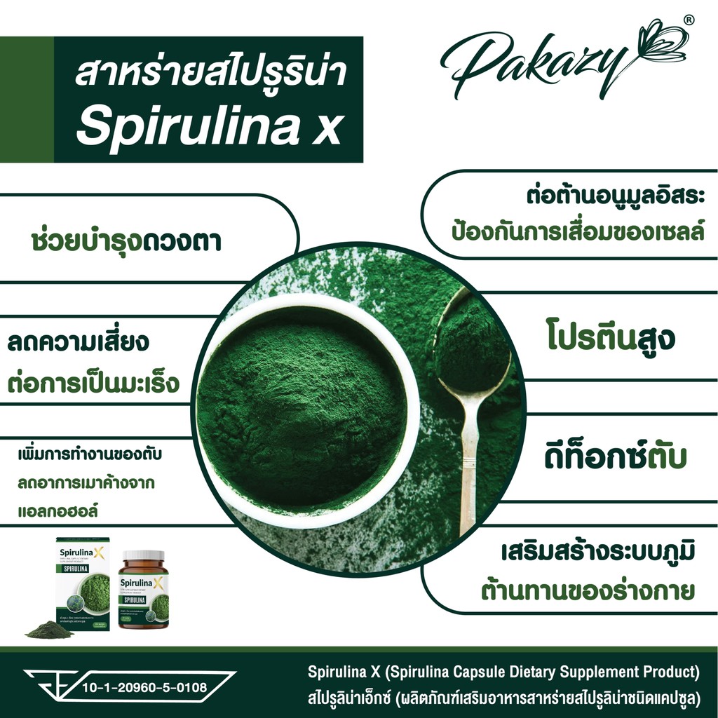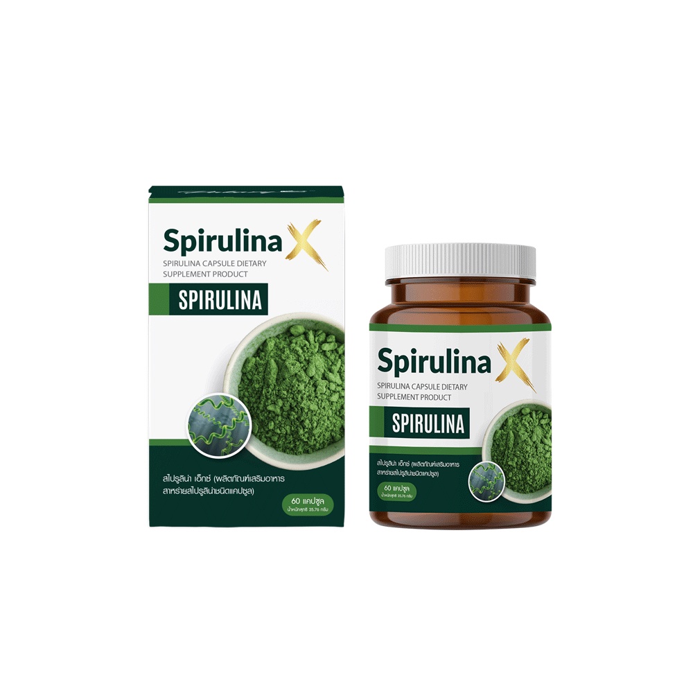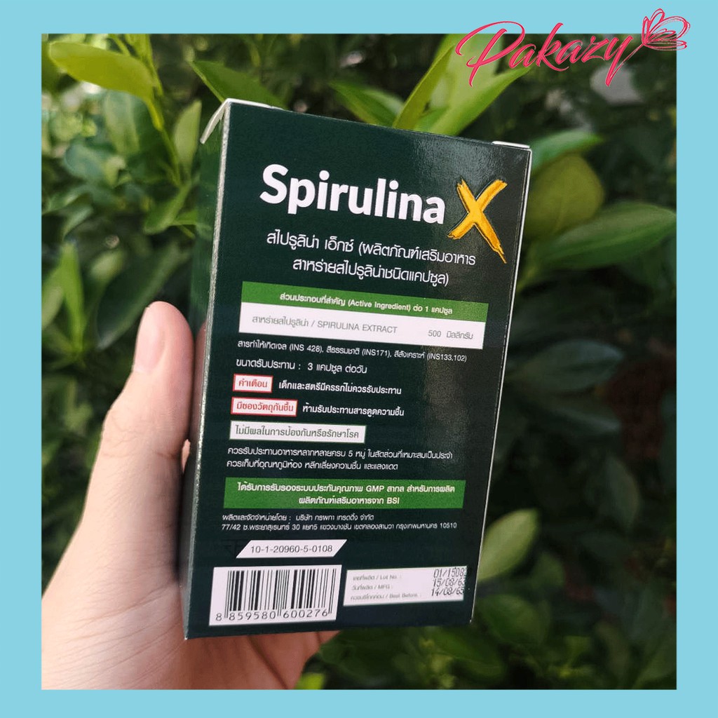 Pakazy Spirulina X สไปรูลิน่า เอ็กซ์ สาหร่ายเกลียวทอง 60 แคปซูล