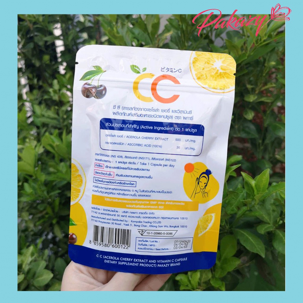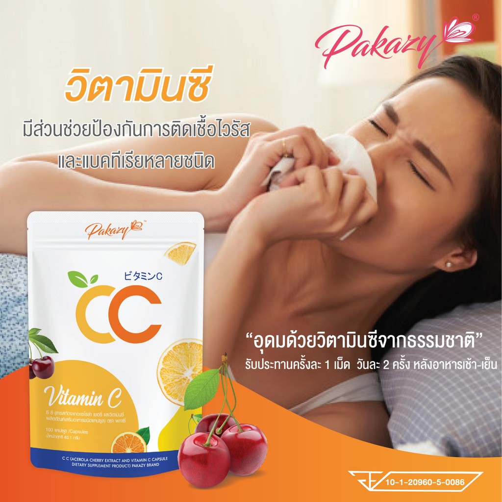Pakazy CC Acerola Cherry and Vitamin C Capsule ซี ซี อะเซโรล่า เชอรี่ และ วิตามินซี 100 แคปซูล