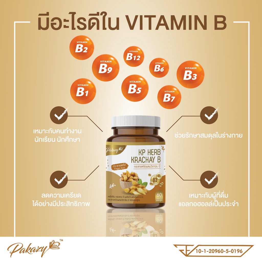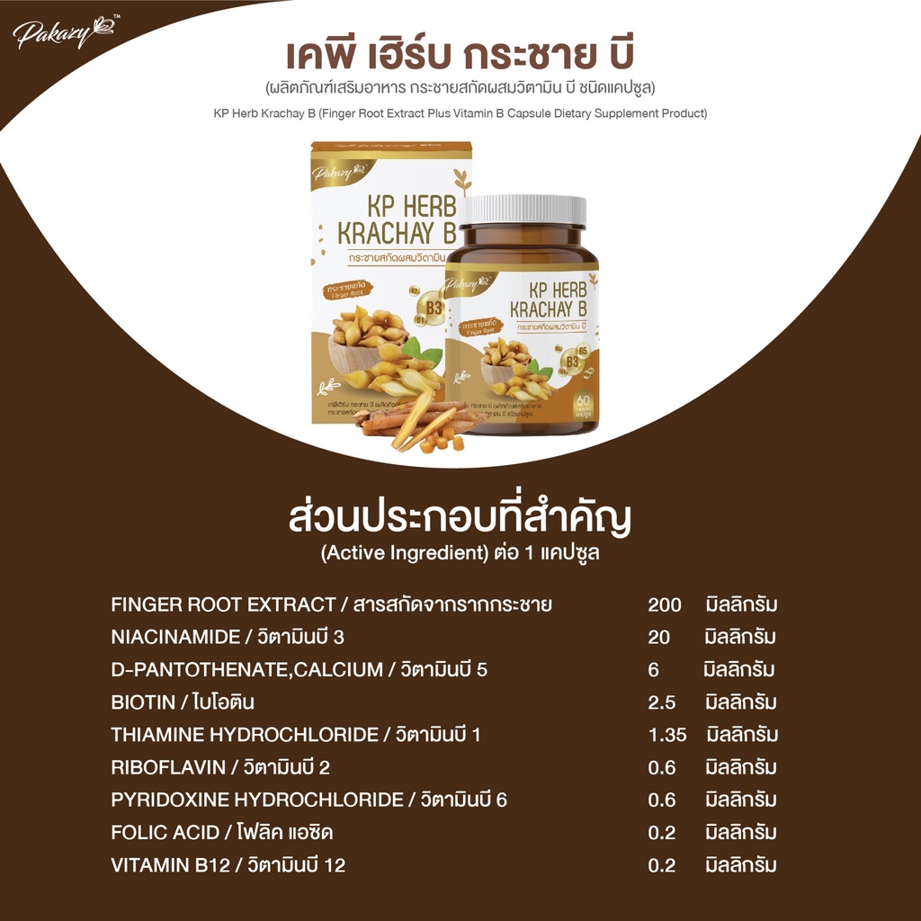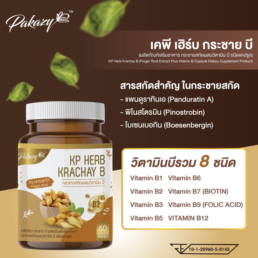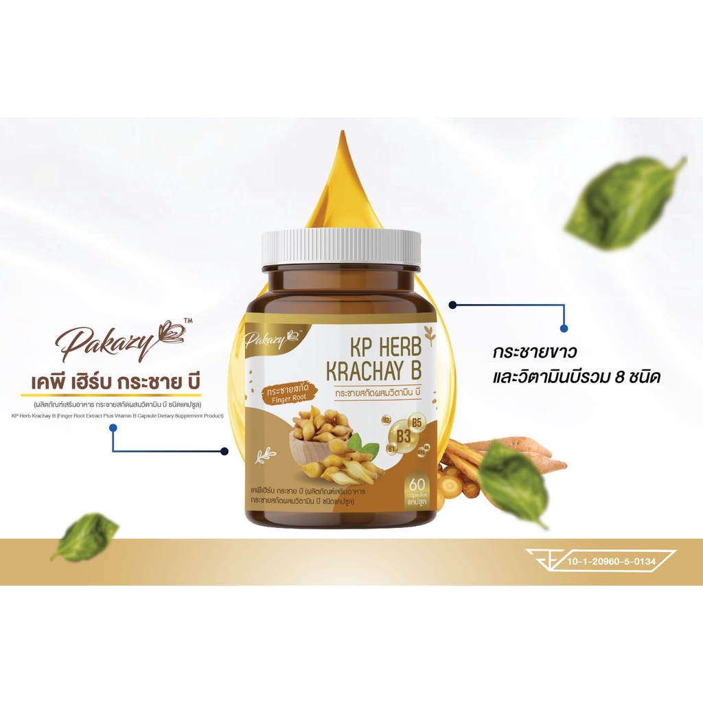 Pakazy KP Herb Krachay B กระชายขาวสกัด ผสมวิตามินบี 60 แคปซูล