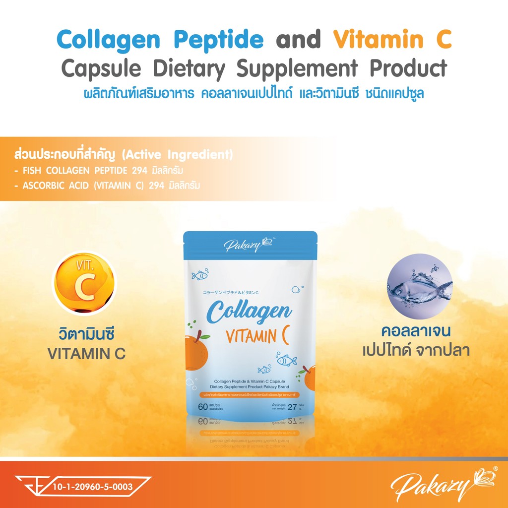 Pakazy Collagen Peptide and Vitamin C คอลลาเจนเปปไทด์ และวิตามินซี 60 แคปซูล