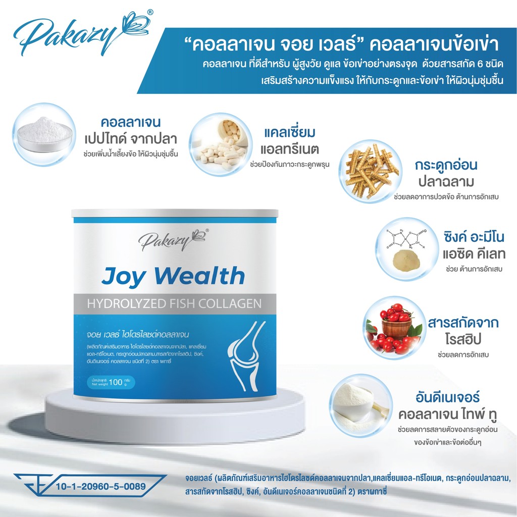 Pakazy จอย เวลธ์ คอลลาเจนจากปลา,แคลเซี่ยม,อันดีเนเจอร์ คอลลาเจน ชนิดที่ 2 ขนาด 100 กรัม
