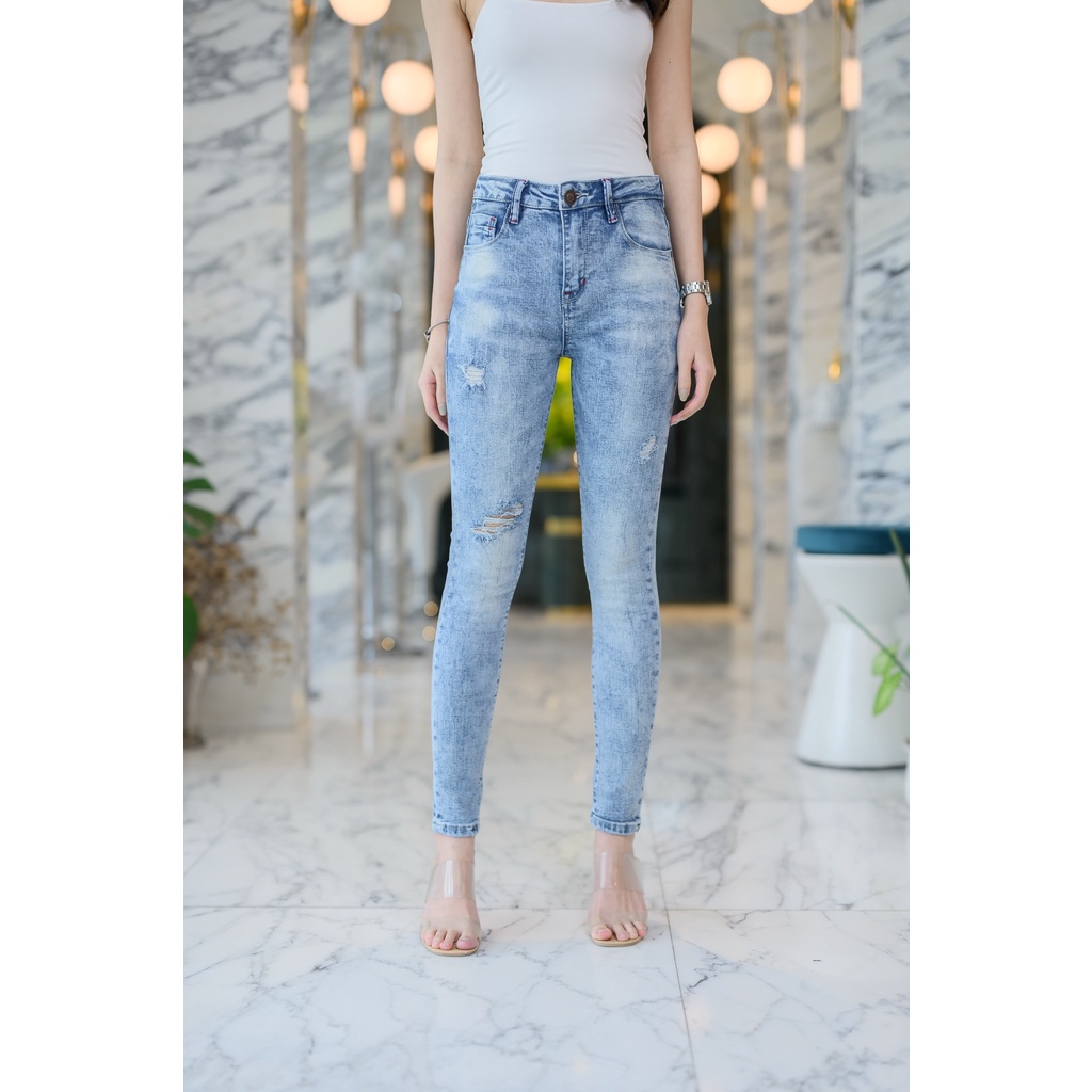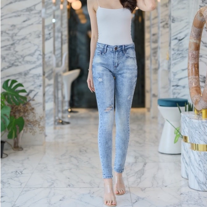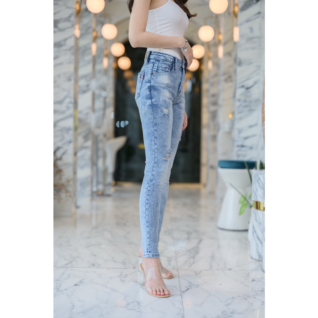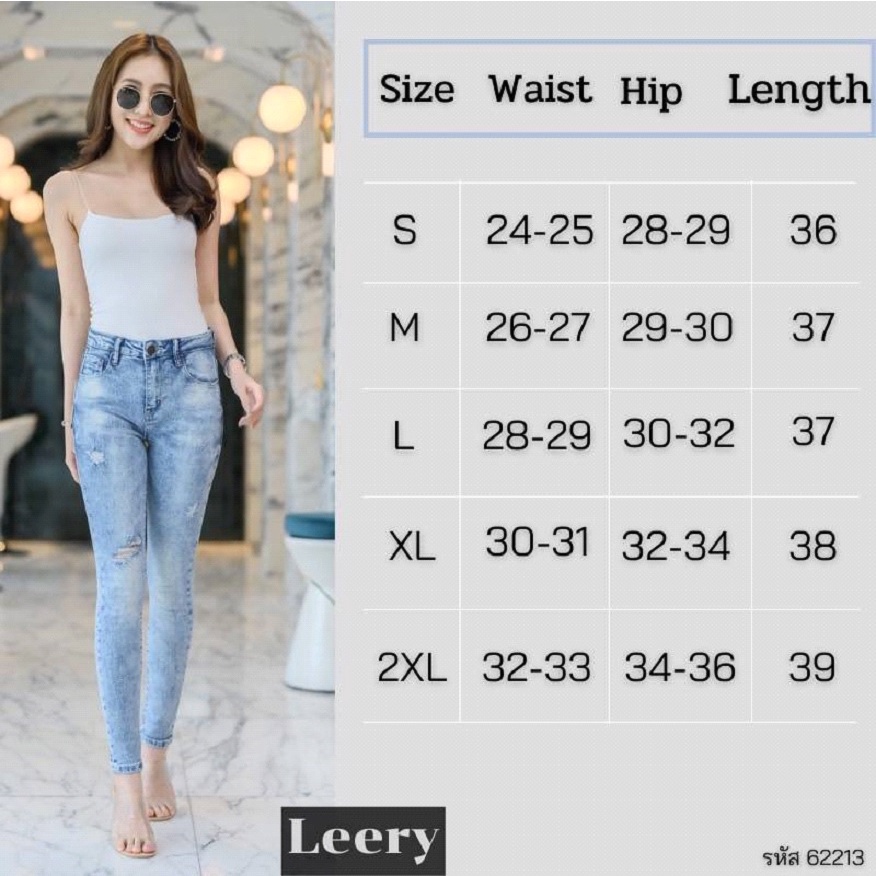 กางเกงยีนส์ ขายาว ผ้ายืด ฟอกสีบลูไบโอซีด รุ่นLW62213 ไซส์ S-2XL