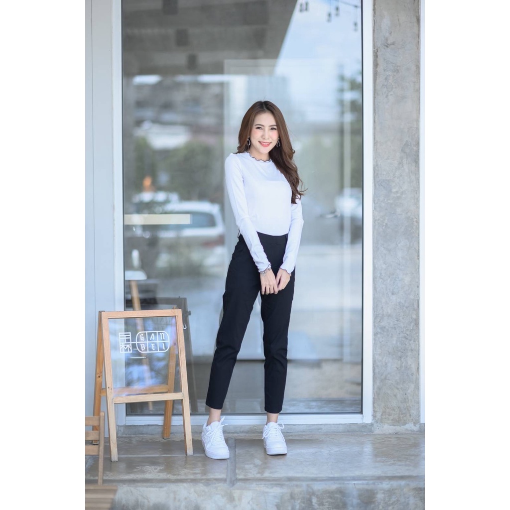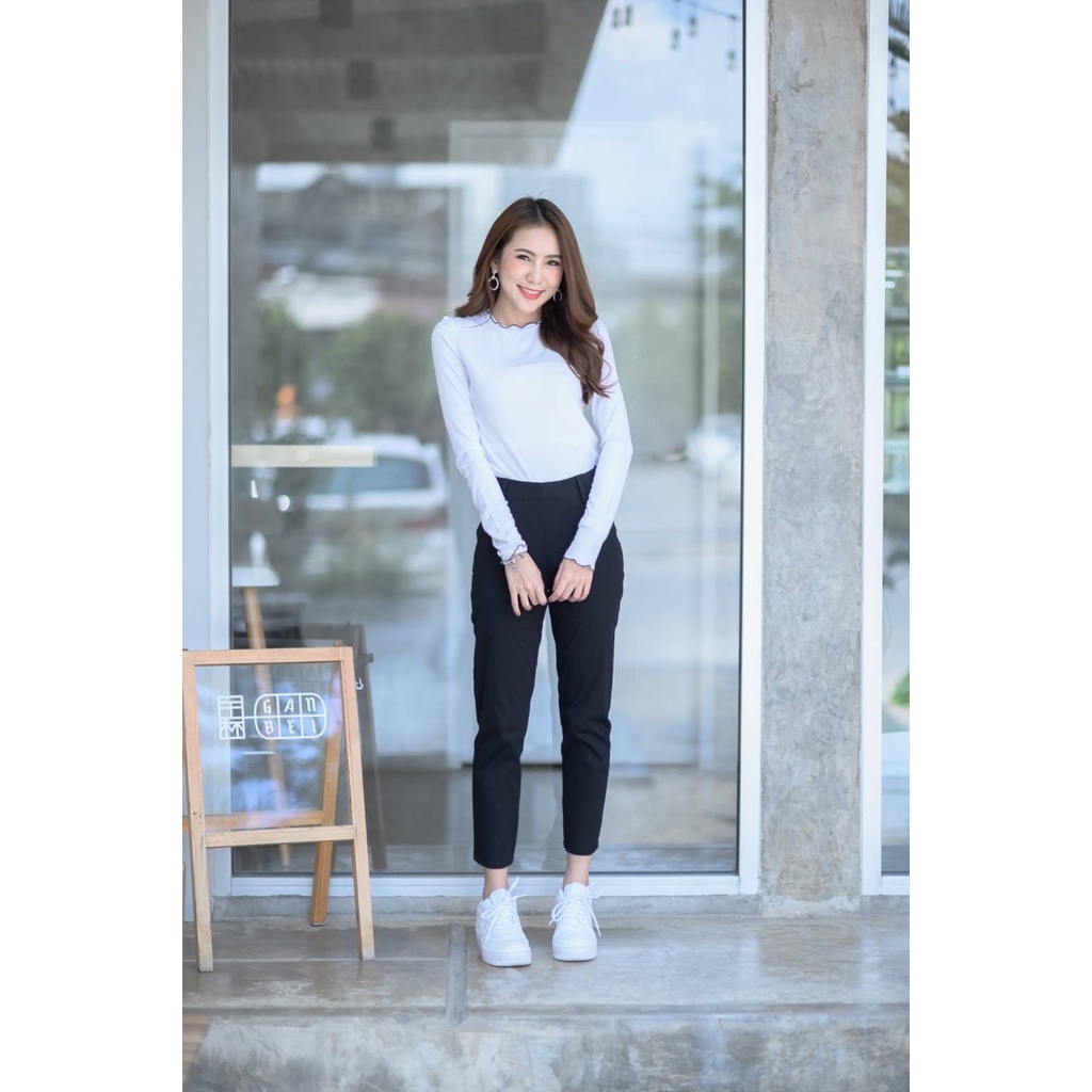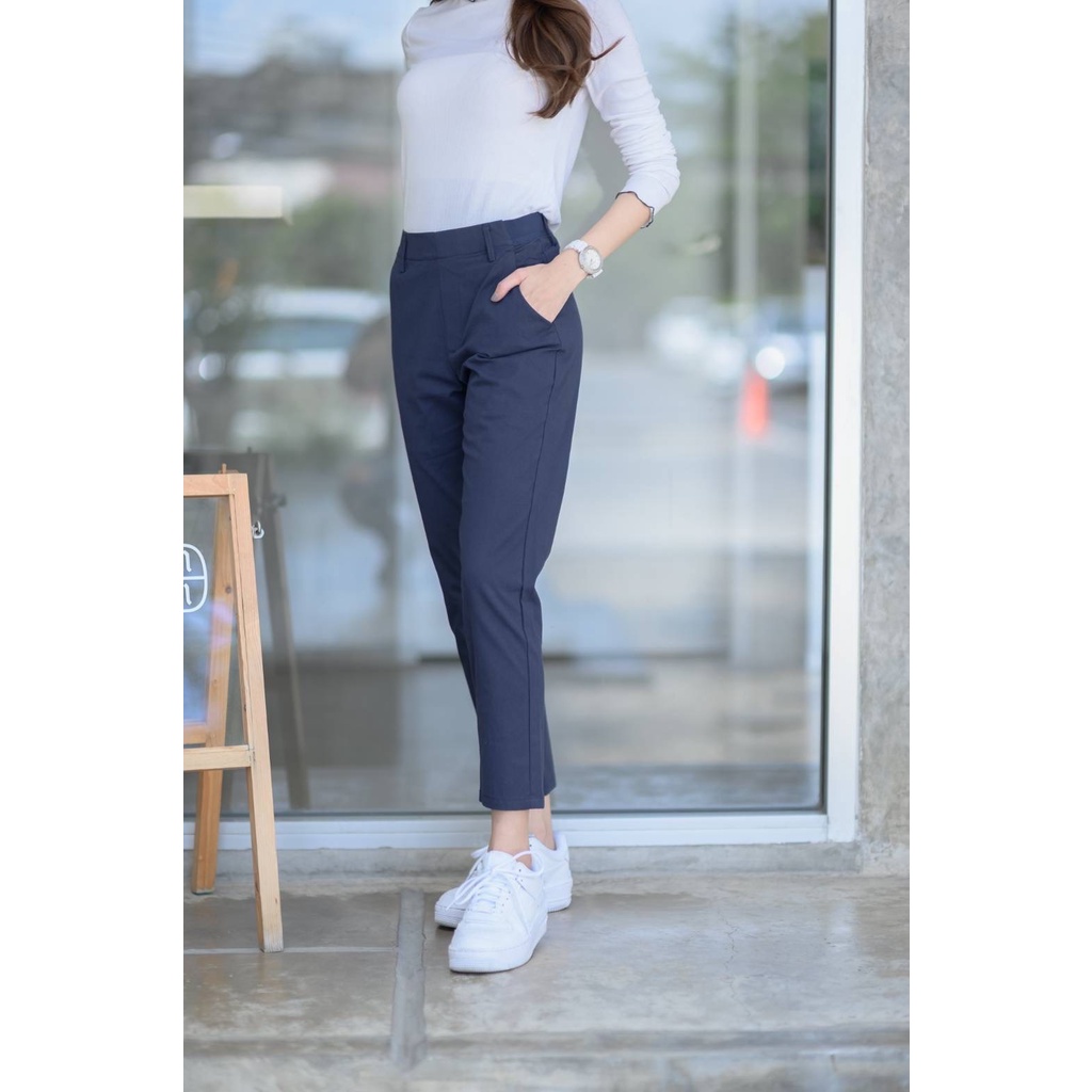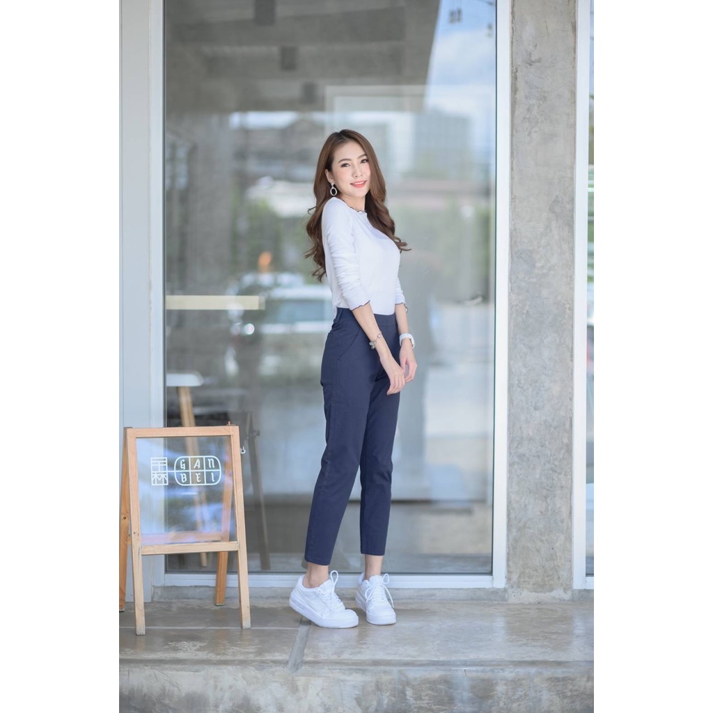 Leey_jeansกางเกง 9 ส่วน ผ้า Cotton Spandex เอวเสริมยางยืด กางเกงทำงาน