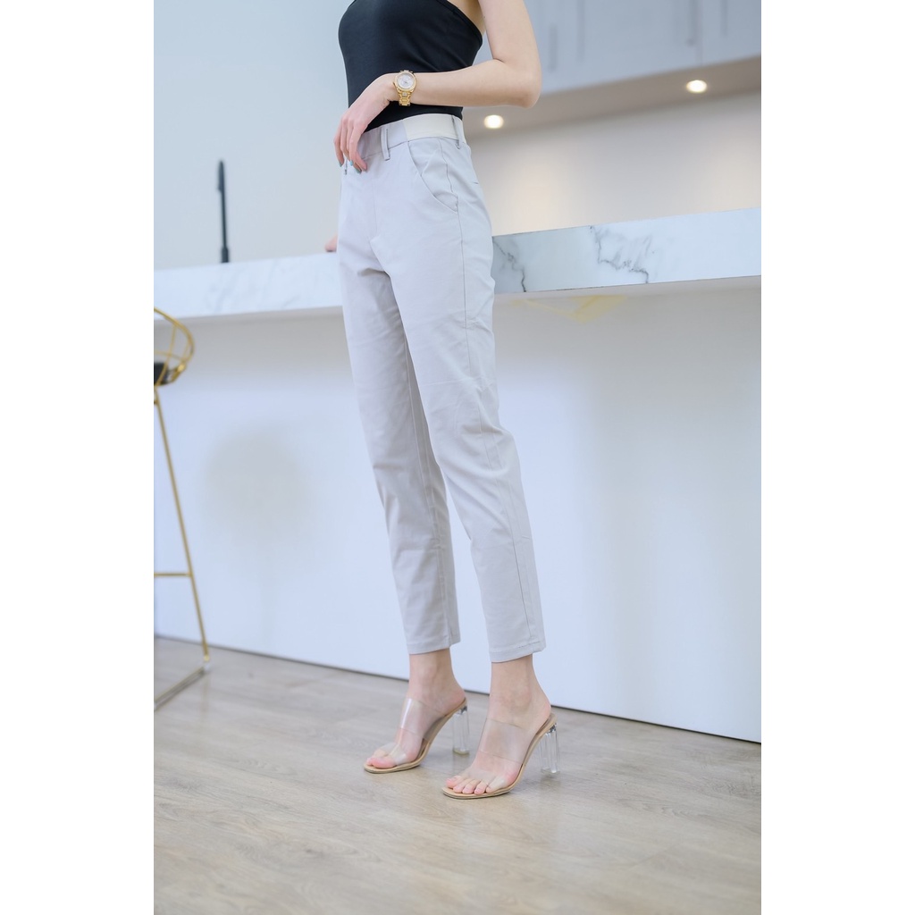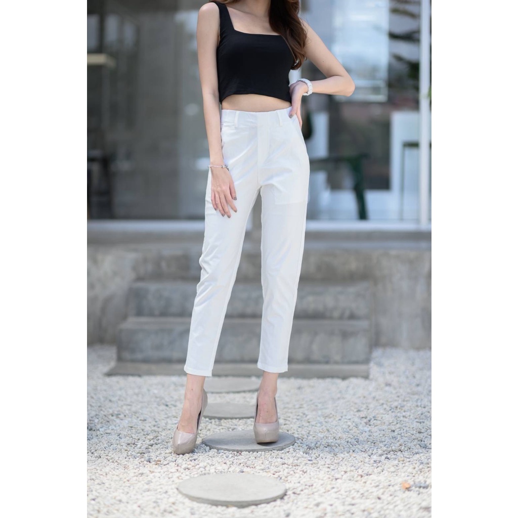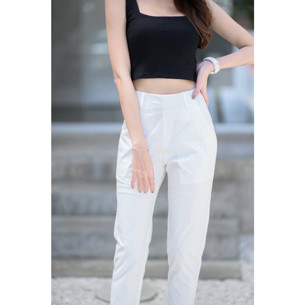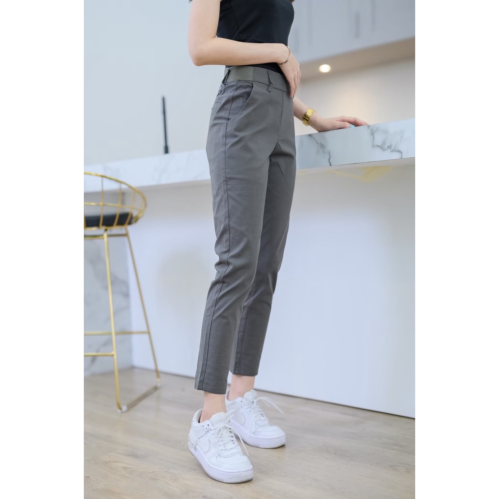 Leey_jeansกางเกง 9 ส่วน ผ้า Cotton Spandex เอวเสริมยางยืด กางเกงทำงาน