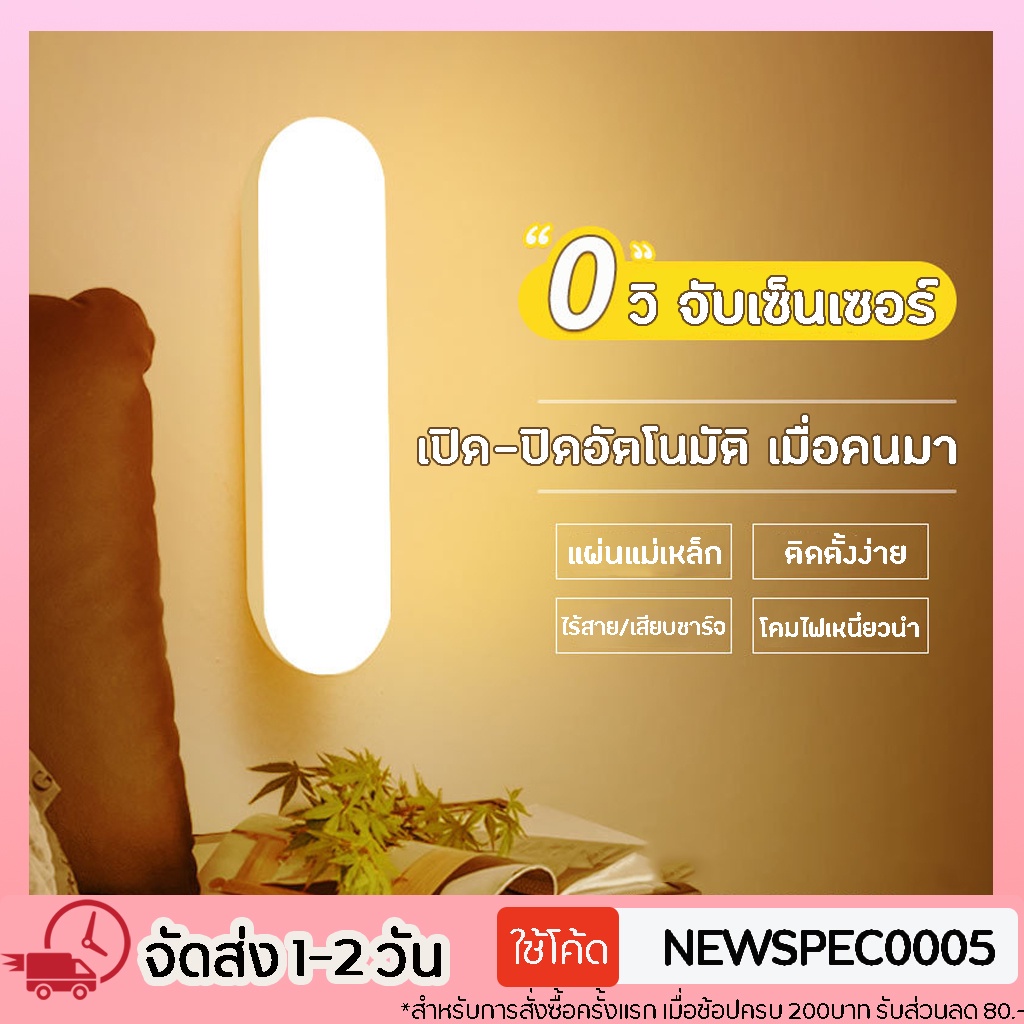 Specialthing โคมไฟเซ็นเซอร์ ไฟติดห้องนอน ไฟเซ็นเซอร์ LED ไฟเซนเซอร์อัตโนมัติ โคมไฟเหนี่ยวนำร่างกายมนุษย์ โคมไฟหัวนอน