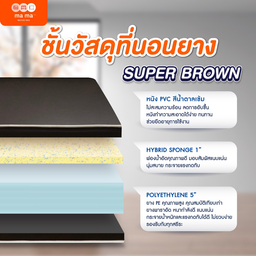 mama bedding ที่นอนยางPE หนา6นิ้ว รุ่น Super Brown หุ้มหนังPVC แถมหมอนหนุน