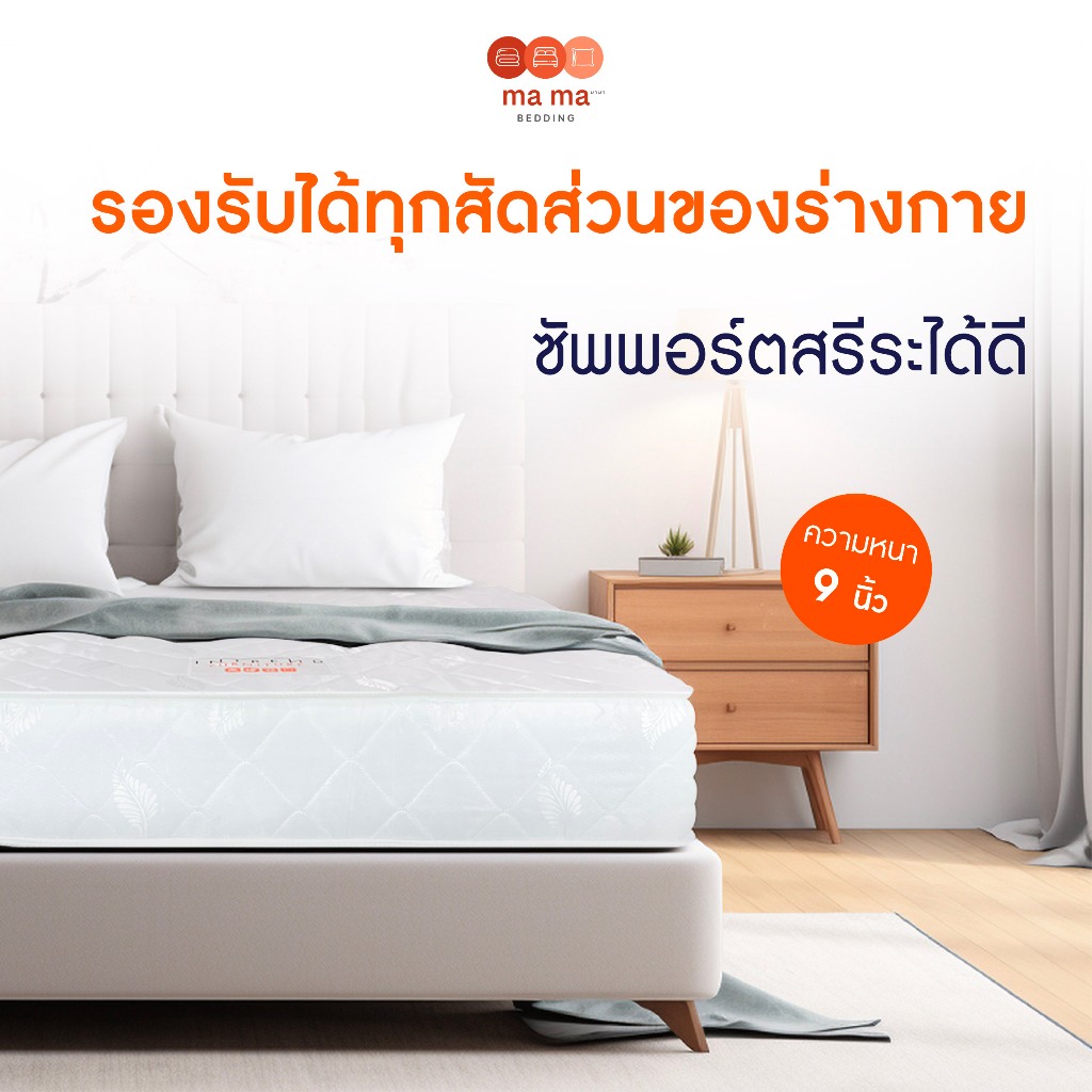 mama bedding ที่นอนสปริง หนา9นิ้ว รุ่น Flower นุ่มนอนสบาย ฟรีหมอนหนุน