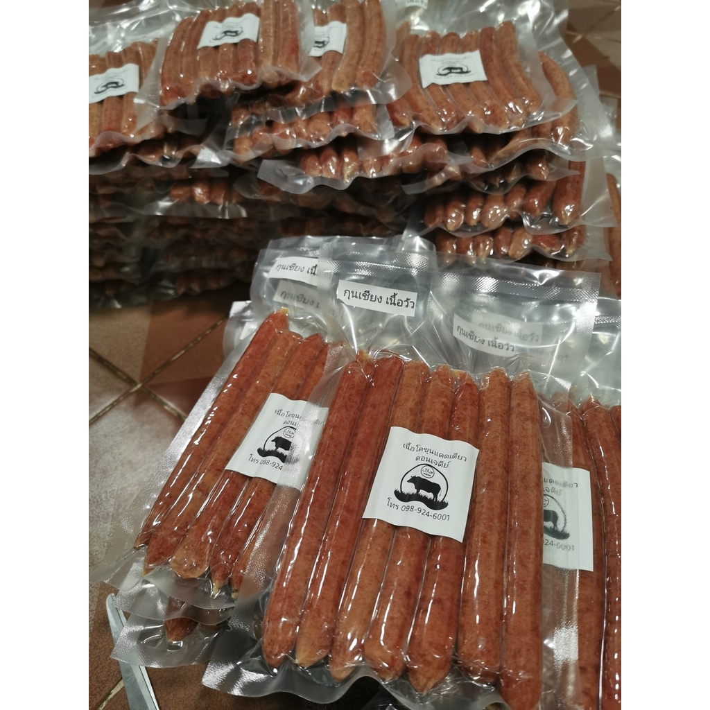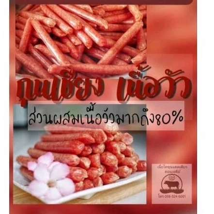 กุนเชียง เนื้อวัว หวานน้อย ไม่ใส่ดินปะสิว ไม่ใส่แป้ง มีส่วนผสมของเนื้อวัวมากถึง 80%