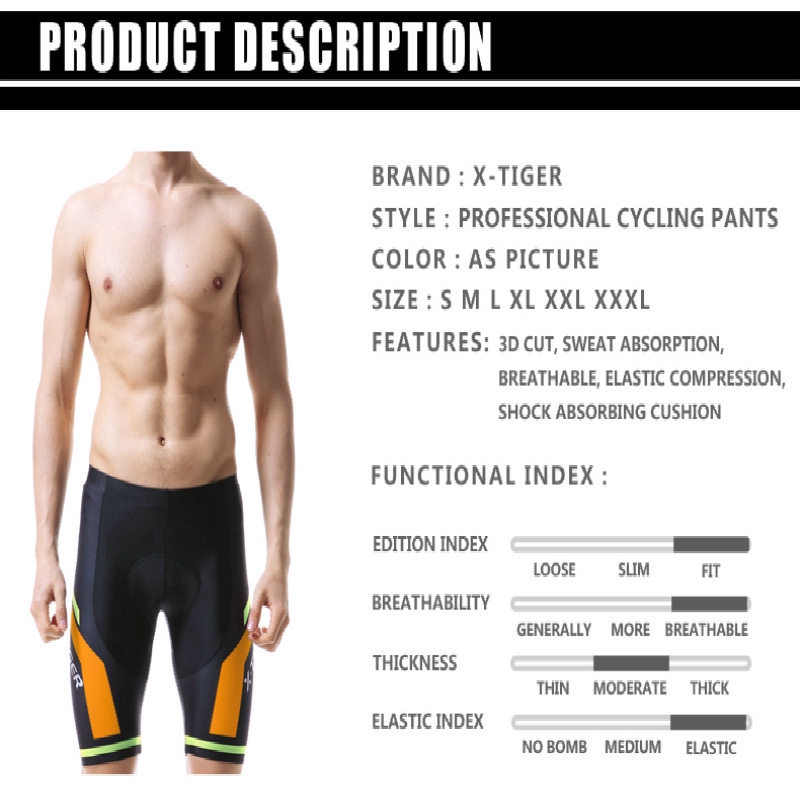 X-Tiger กางเกงขาสั้น 5D ใส่ขี่จักรยาน เล่นกีฬา สำหรับผู้ชาย