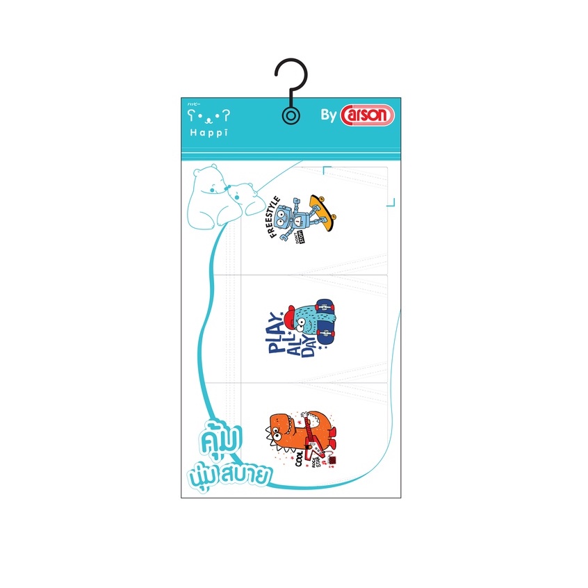 กางเกงในเด็กผู้ชาย ลายการ์ตูน Happi By Carson แพ็ค 3 ตัว คละลาย (HBB203P3/WH)(ชุดชั้นในถุงฟ้า)