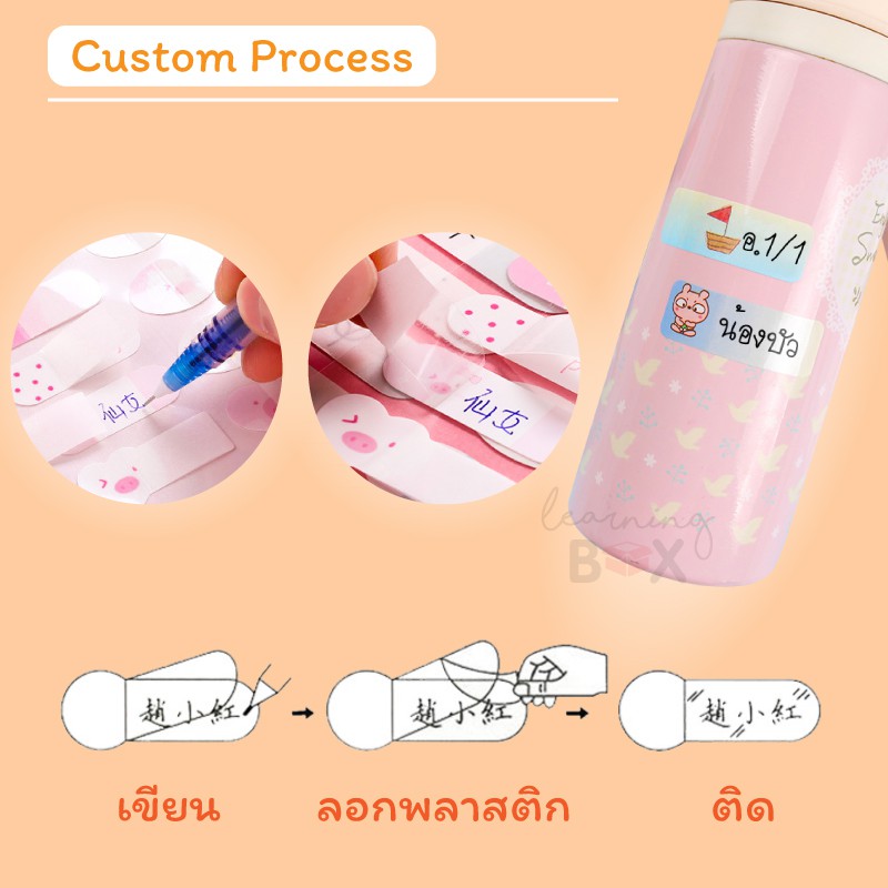 สติกเกอร์ชื่อ กันน้ำ ใช้ติดขวดน้ำ แก้วน้ำ เครื่องเขียน (แบบเขียนเอง)