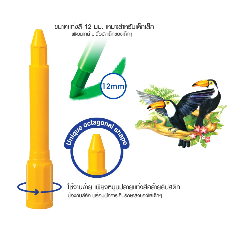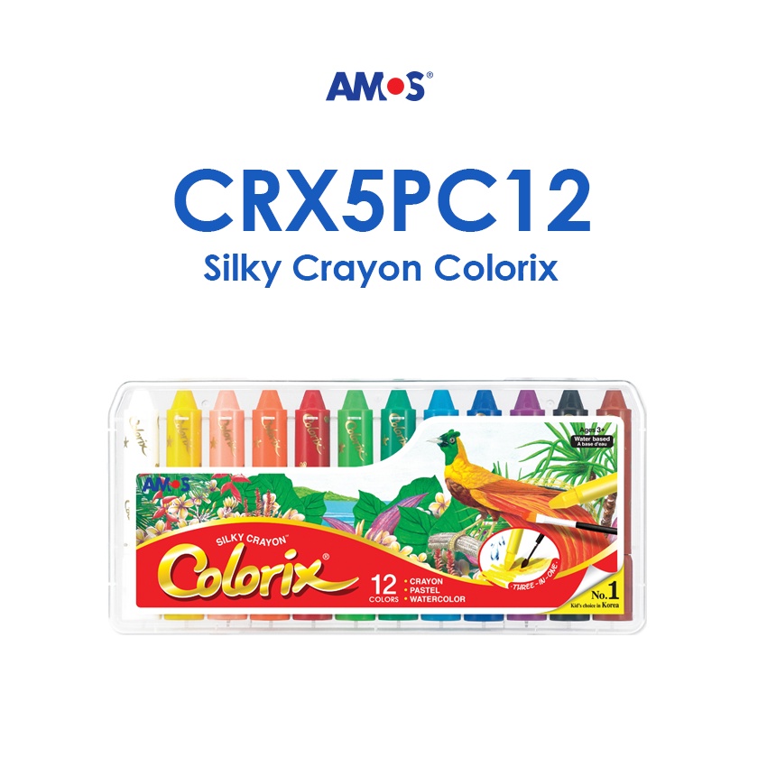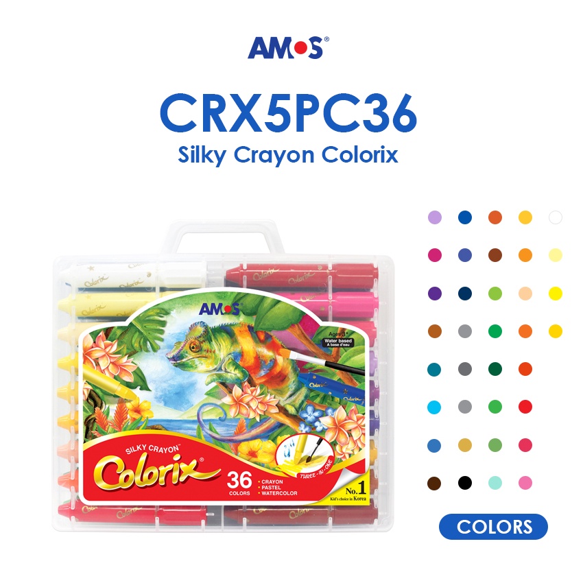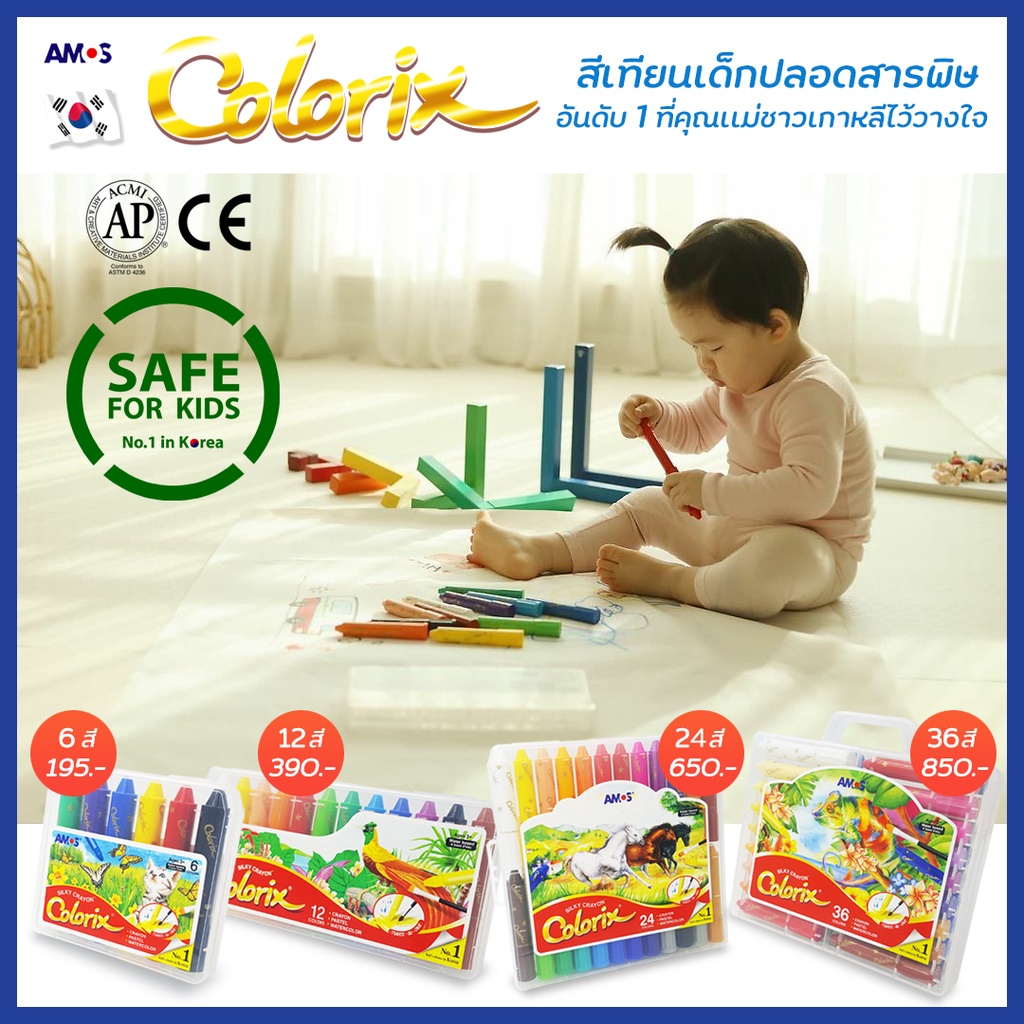 AMOS Colorix สีเทียนไร้สารพิษ 3in1 สีสันสดใส เช็ดออกได้ด้วยน้ำเปล่าบริหารกล้ามเนื้อมัดเล็ก
