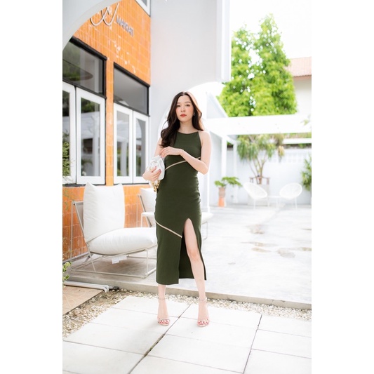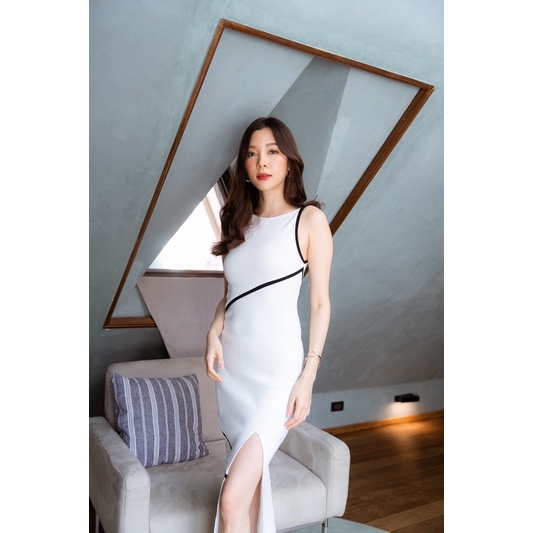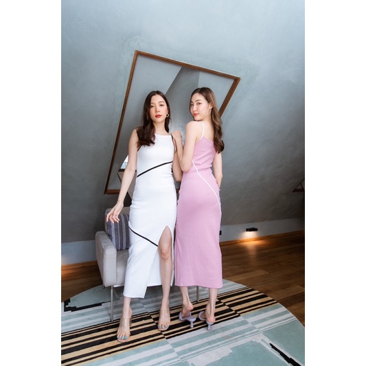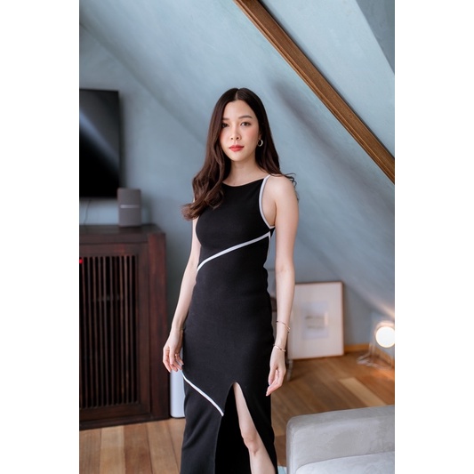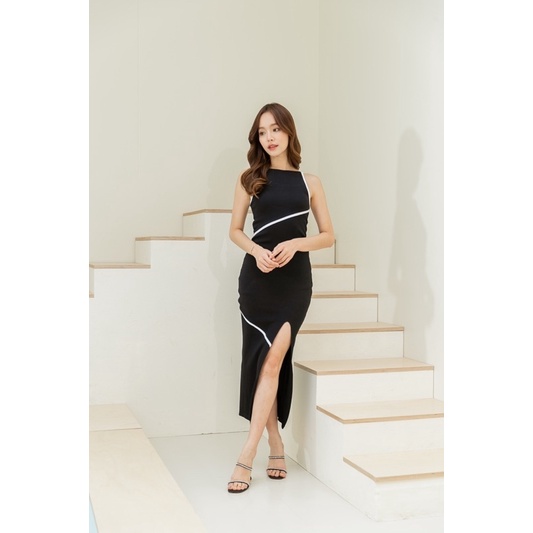 E-tax[เหลือ6xx.-ลด30%เก็บโค้ด"ร้านโค้ดคุ้ม"] Basicnotbasics - Line maxi dress แท้100% เดรสยาว ผ่าหน้าขา ชุดออกงาน