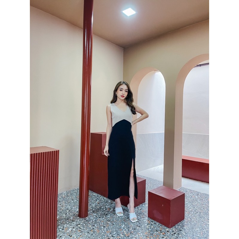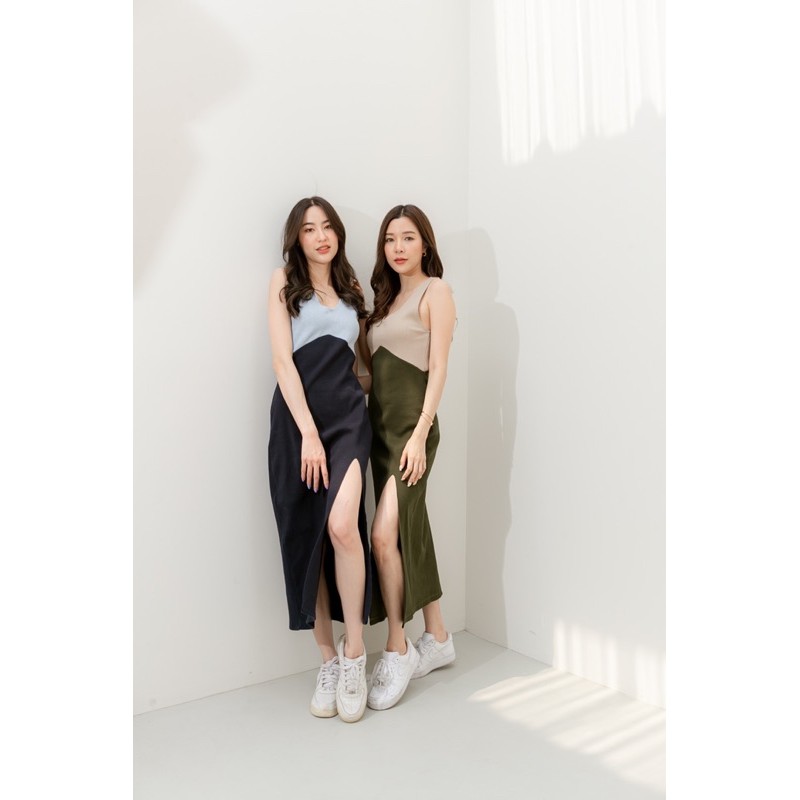 E-tax[เหลือ6xx.-ลด30%เก็บโค้ด"ร้านโค้ดคุ้ม"] Basicnotbasics - Dress two tone พลัสไซส์ ใส่ได้ เดรสทูโทนผ้ายืด