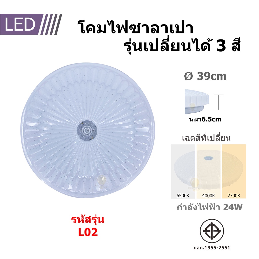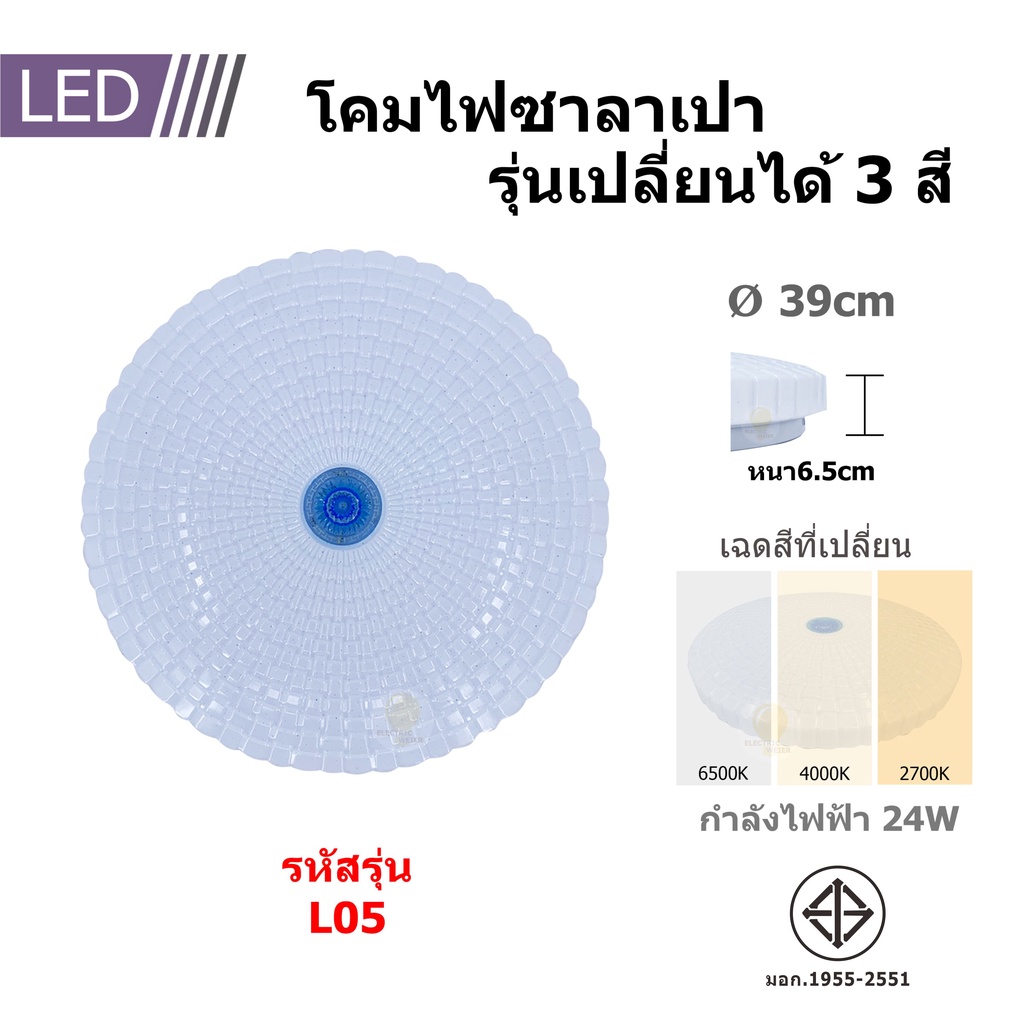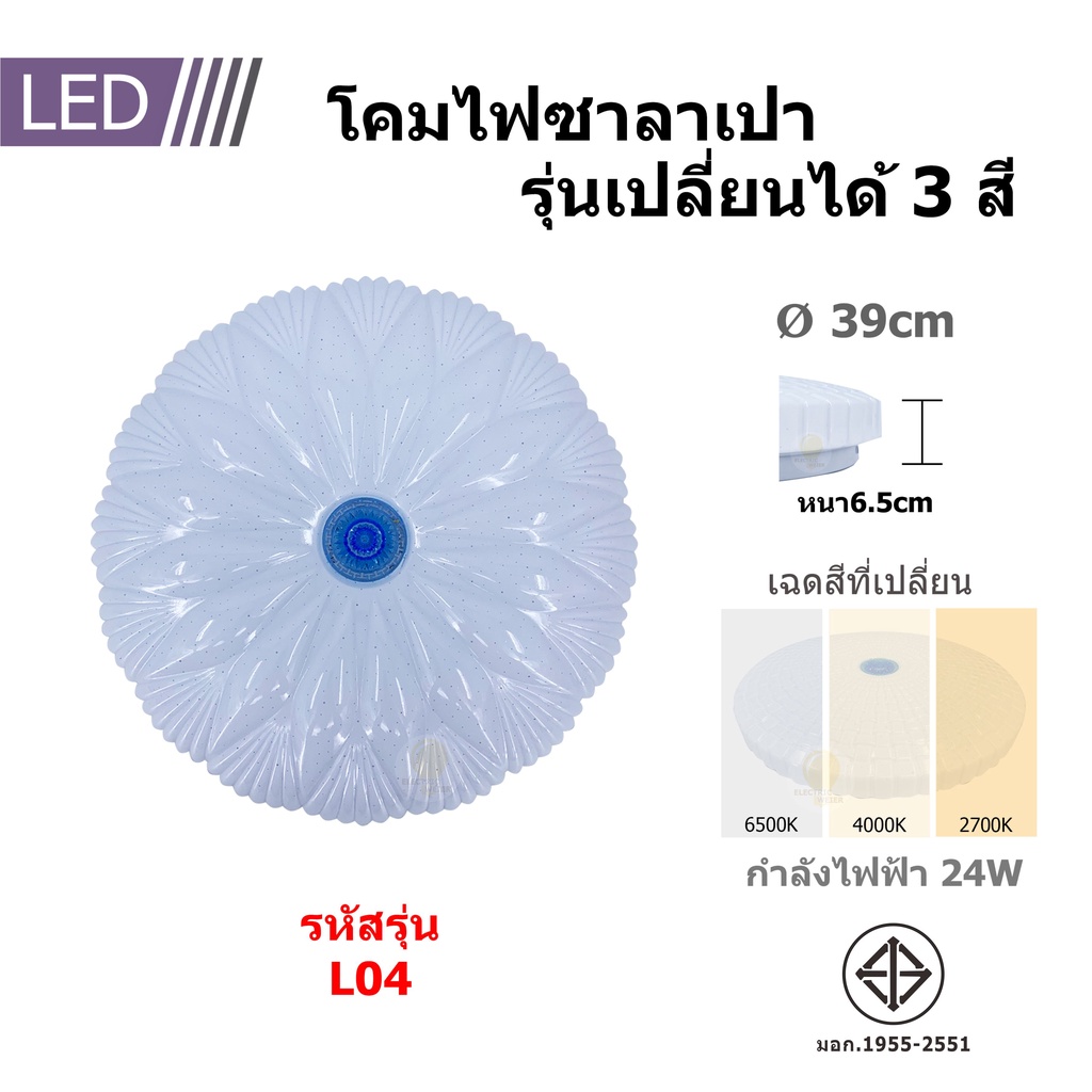 โคมไฟเพดาน ซาลาเปา LED24W ปรับแสงได้3ระดับ แสงขาว แสงคลูไวท์แสงวอร์ม ประหยัดพลังงาน ไฟสว่าง รุ่นใหม่