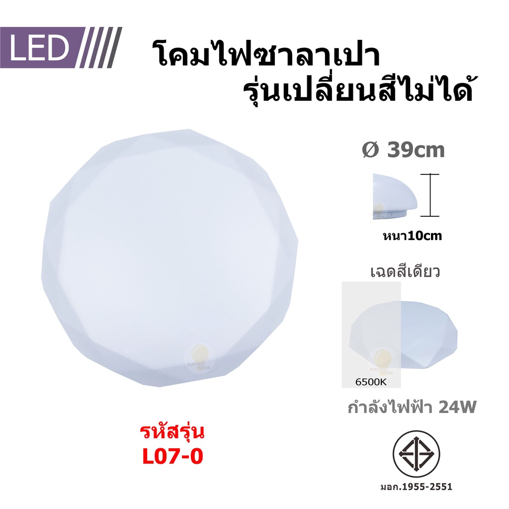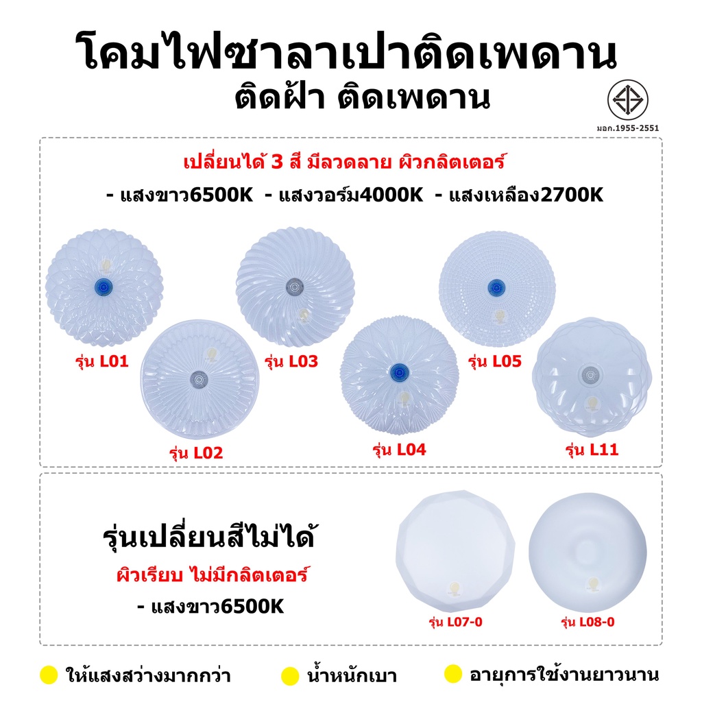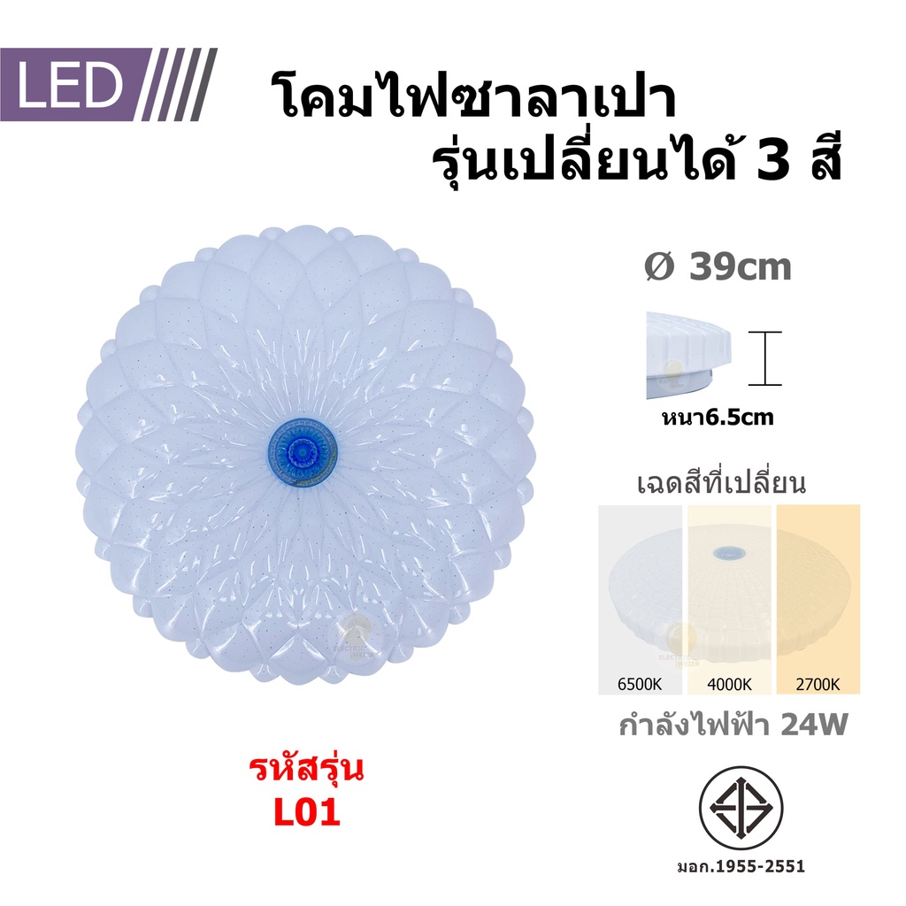โคมไฟเพดาน ซาลาเปา LED24W ปรับแสงได้3ระดับ แสงขาว แสงคลูไวท์แสงวอร์ม ประหยัดพลังงาน ไฟสว่าง รุ่นใหม่