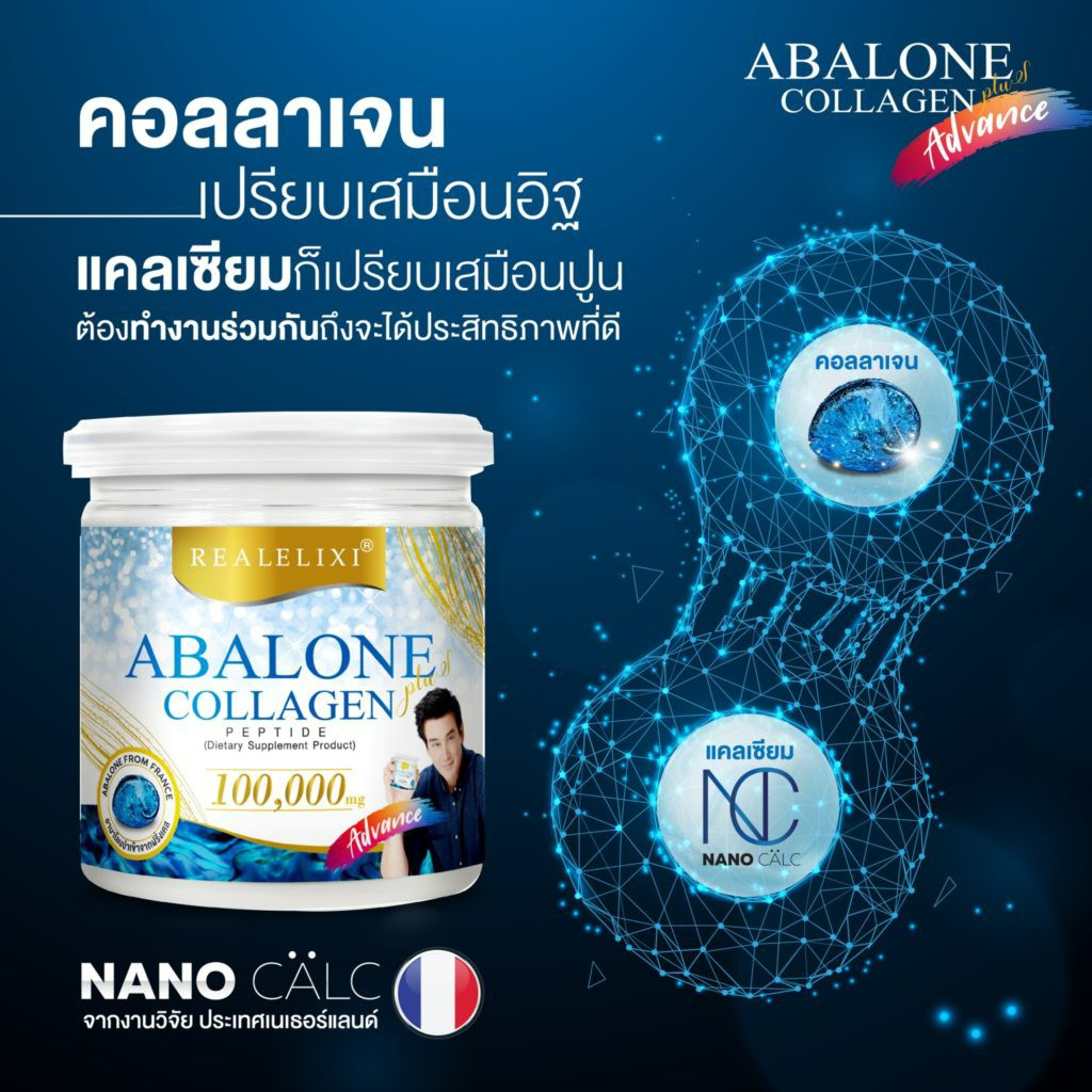 Real Elixir Abalone Collagen Advance อาบาโลน คอลลาเจนเปปไทด์ เพิ่มเเคลเซียมนาโน ผสม หอยเป๋าฮื้อ สูตร Advance 6 กระปุก