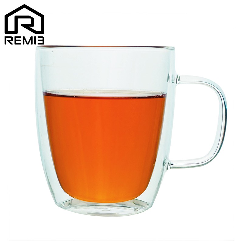 REM13 แก้ว2ชั้น บรรจุกาแฟ เบียร์ เครื่องดื่ม แบบมีหูจับ รักษาความเย็น-ร้อนได้ดี