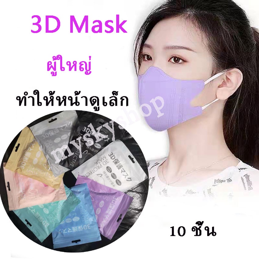 3D Mask หน้ากากอนามัยผู้ใหญ่ ทำให้หน้าดูเล็ก มี 8 สี 1แพ็คมี10ชิ้น