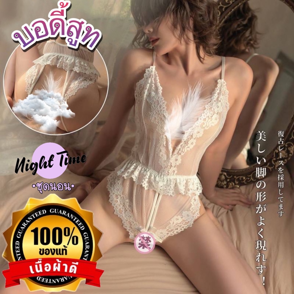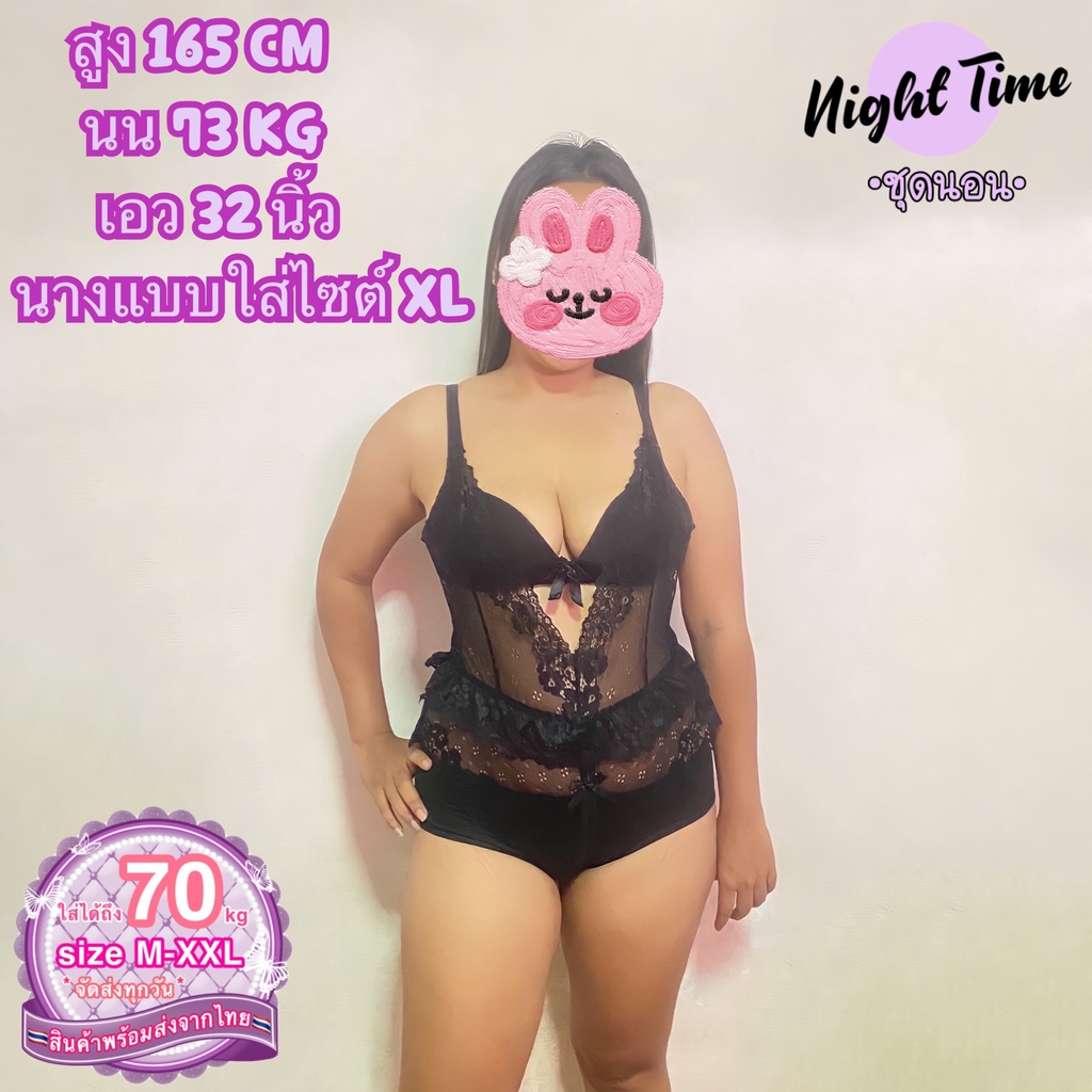 ชุดนอนไม่ได้นอนสีดำ บอดี้สูทลุกไม้ระบายสวย ขายส่งสีขาว/ดำ 2ไซส์M-L ใส่ได้ถึง70Kg. N-630/7707
