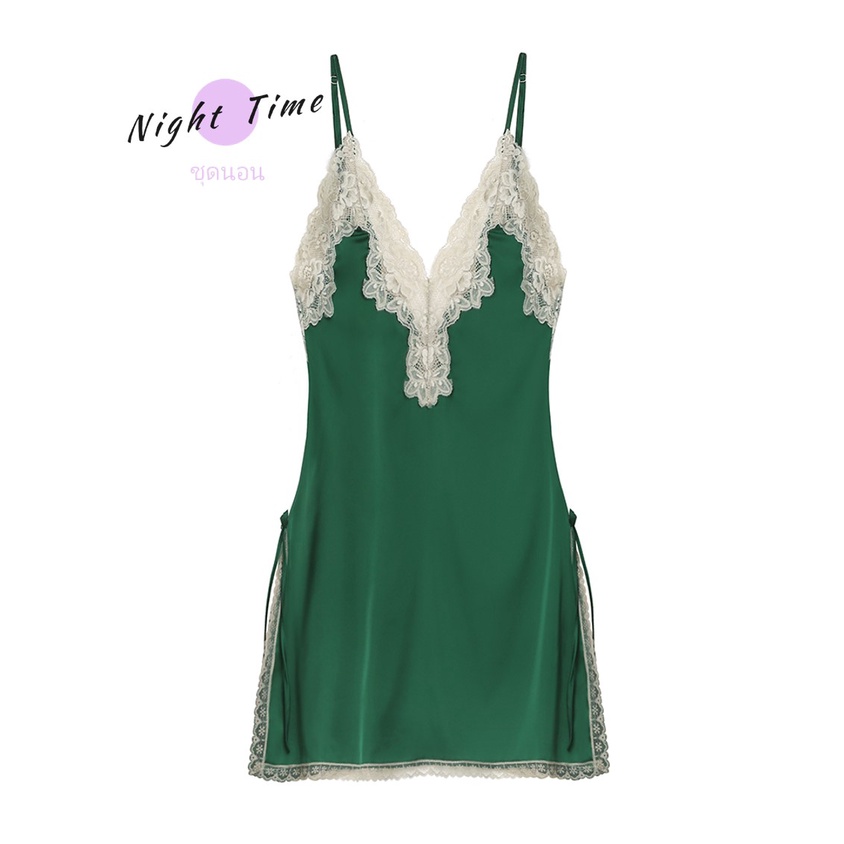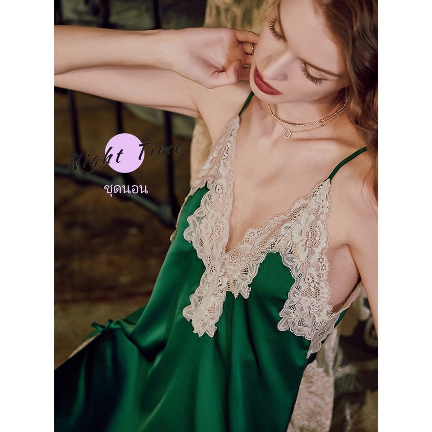 ชุดนอนซาติน สีสวยผ้าลื่น ชุดนอนเซ็กซี่่ มีไซส์ M-XL ใส่ได้ตั้งแต่น้ำหนัก 40-70 กก. N-092