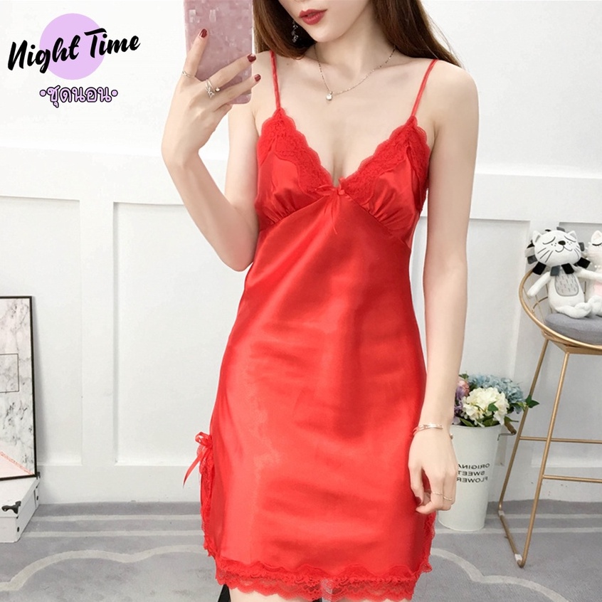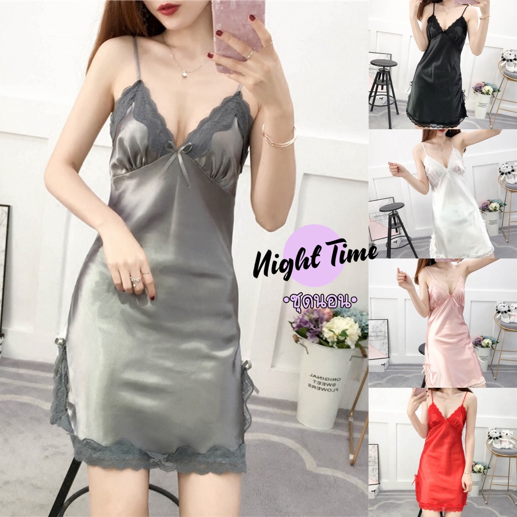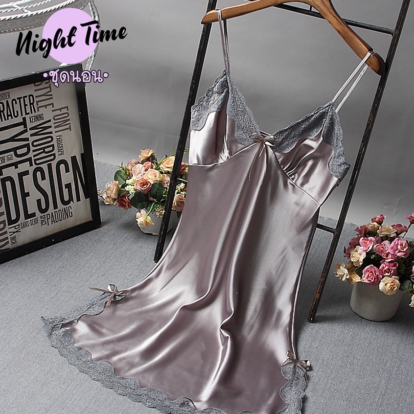 ชุดนอนเดรส ชุดนอนผ้าซาติน 💍เนื้อผ้าดี กระโปรงบานผ้ามันลื่น ใส่สบายมากๆ N-326