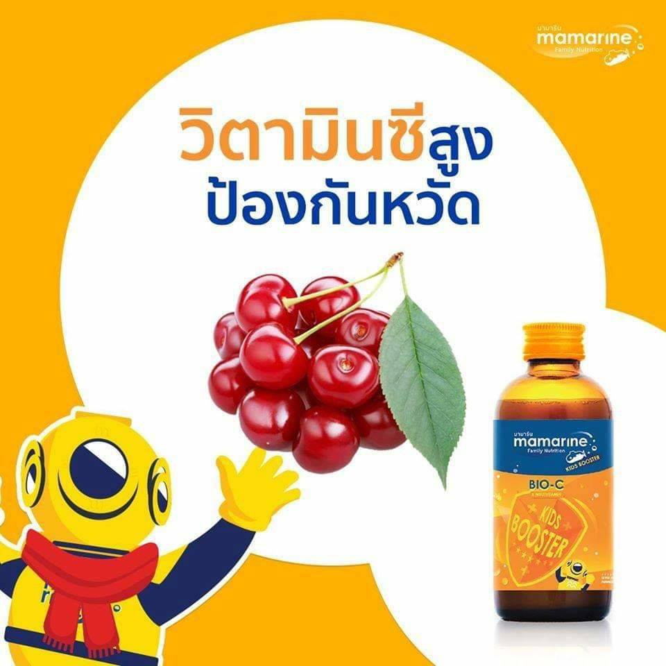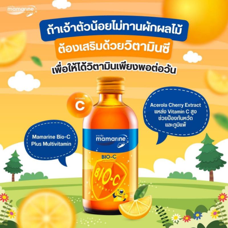 มามารีน mamarine kids วิตามินเด็ก อาหารเสริมช่วยเสริมสร้างภูมิต้านทานป้องกันหวัด Bio-C ขนาด 60 ml.