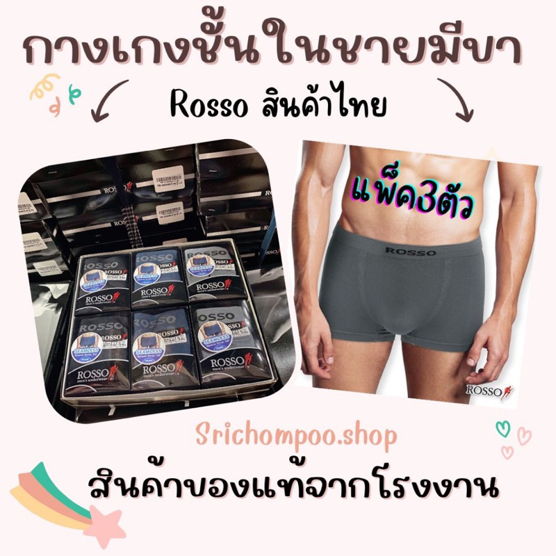 🥇🏆ROSSOกางเกงในชายมีขาของแท้ แพ๊ค3ตัว สินค้าพร้อมส่งค่ะ..