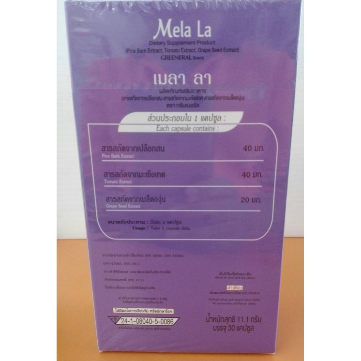 MELA LA (30เม็ด) เมลา ล่า อาหารเสริมลดฝ้าด้วยสารสกัดจากเปลือกสนและอื่นๆ EXP 03/2023