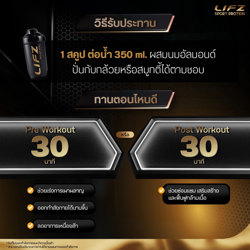 LIFZ SPORT PROTEIN โปรตีนสูง 30 กรัม (High Protein) 130 kcal. สร้างกล้ามเนื้อ ลีนไขมัน ขนาด 2.2 lbs. พร้อมแก้วเชค