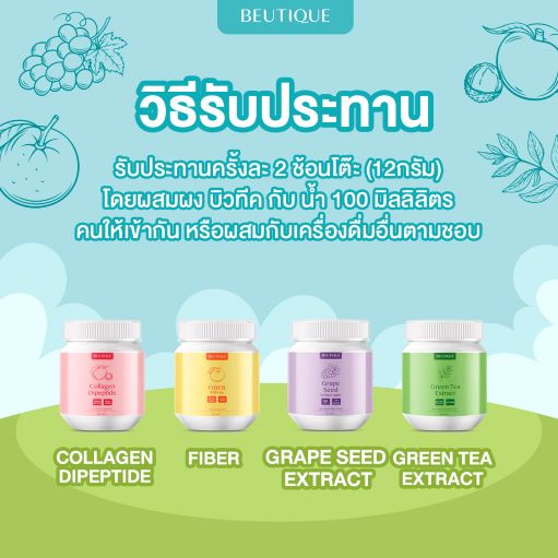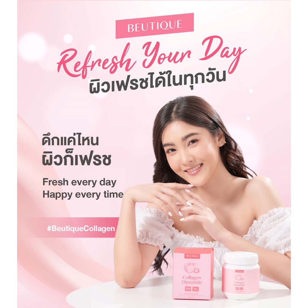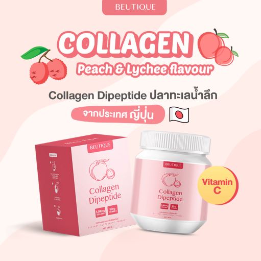 BEUTIQUE COLLAGEN บิวทีค คอลลาเจนไดเปปไทด์ 5,000 mg. รสพีชและลิ้นจี่ คอลลาเจนบำรุงผิว