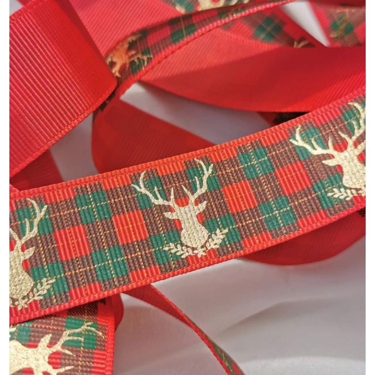 ( ขายเป็นหลา ย้ำขายเป็นหลา )ริบบิ้นปีใหม่ 2.5 CM ริบบิ้นคริสมาส ริบบิ้นห่อของขวัญ