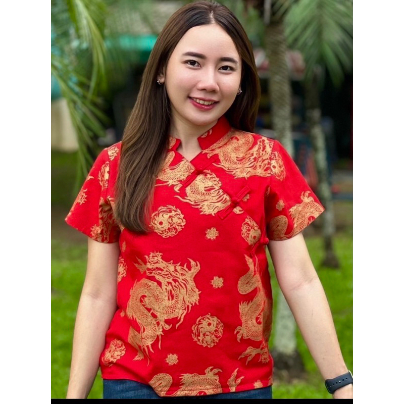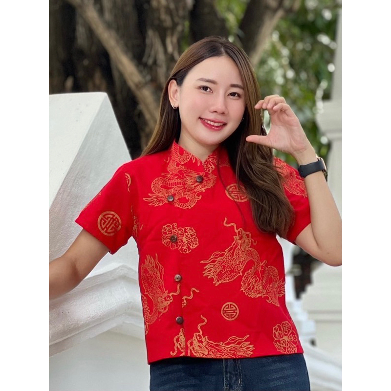 เสื้อตรุษจีนผ้าฝ้ายคอจีนผู้หญิง แขนสั้น