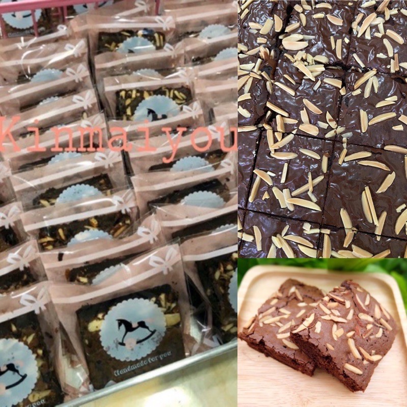 บราวนี่แอลมอนด์ หนุบหนับ เนื้อฉ่ำ ช็อกโกแลตเข้มข้น (แพ็ค 1 ชิ้น/ แพ็ค 3 ชิ้น)