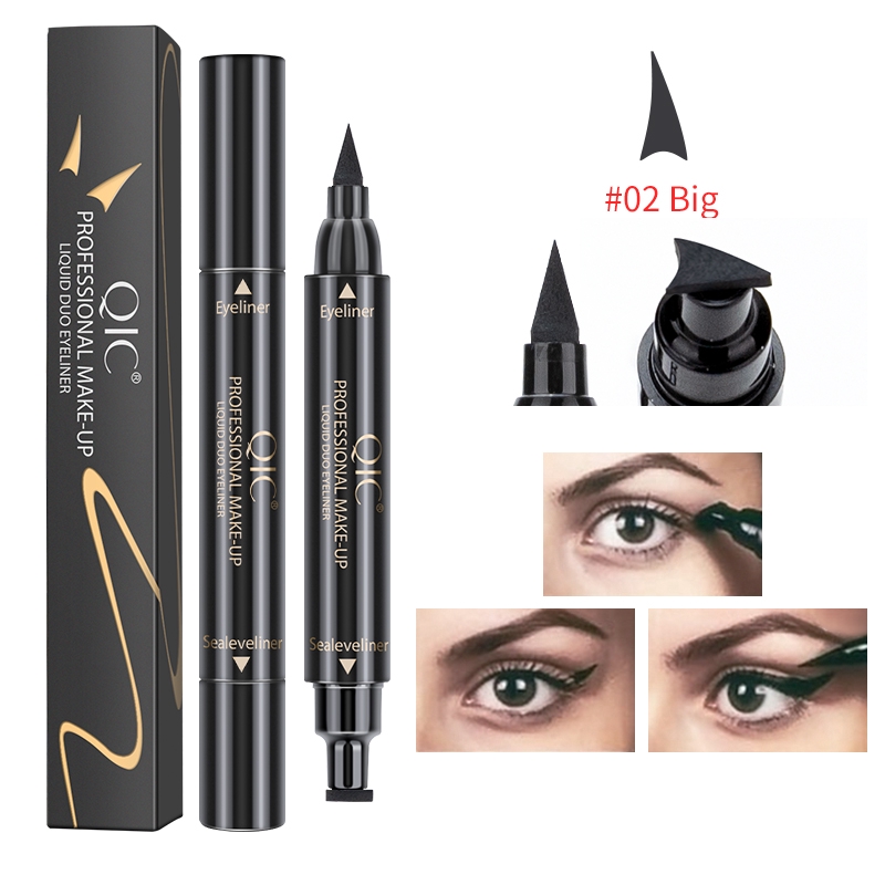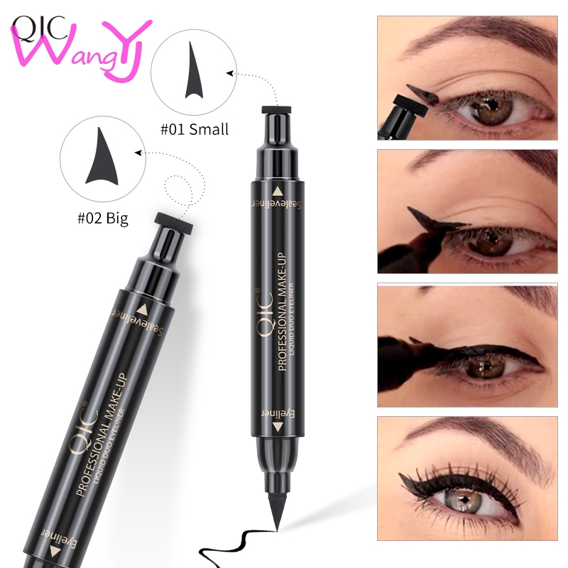 QIC อายไลเนอร์แบบสองหัว กันน้ำ กันเหงื่อ พร้อมหัวสแตมป์วิงหางตา