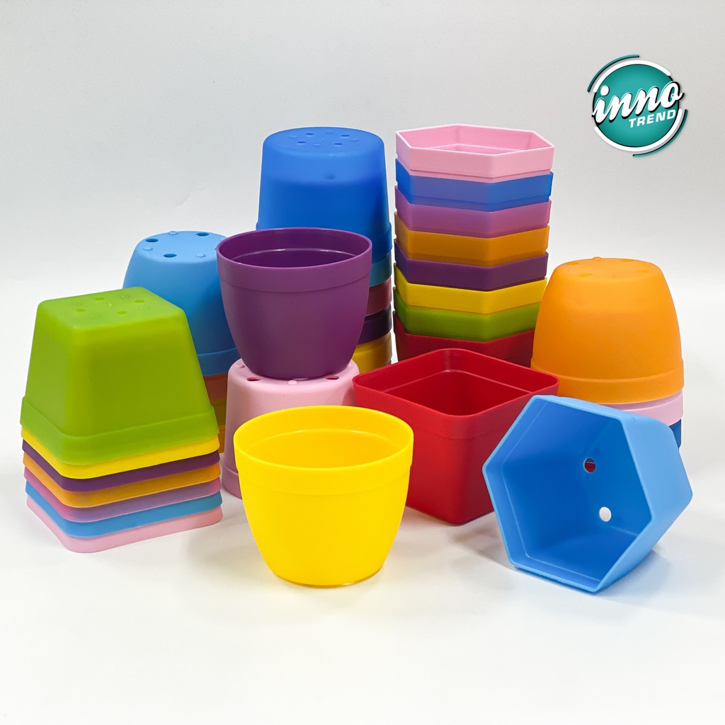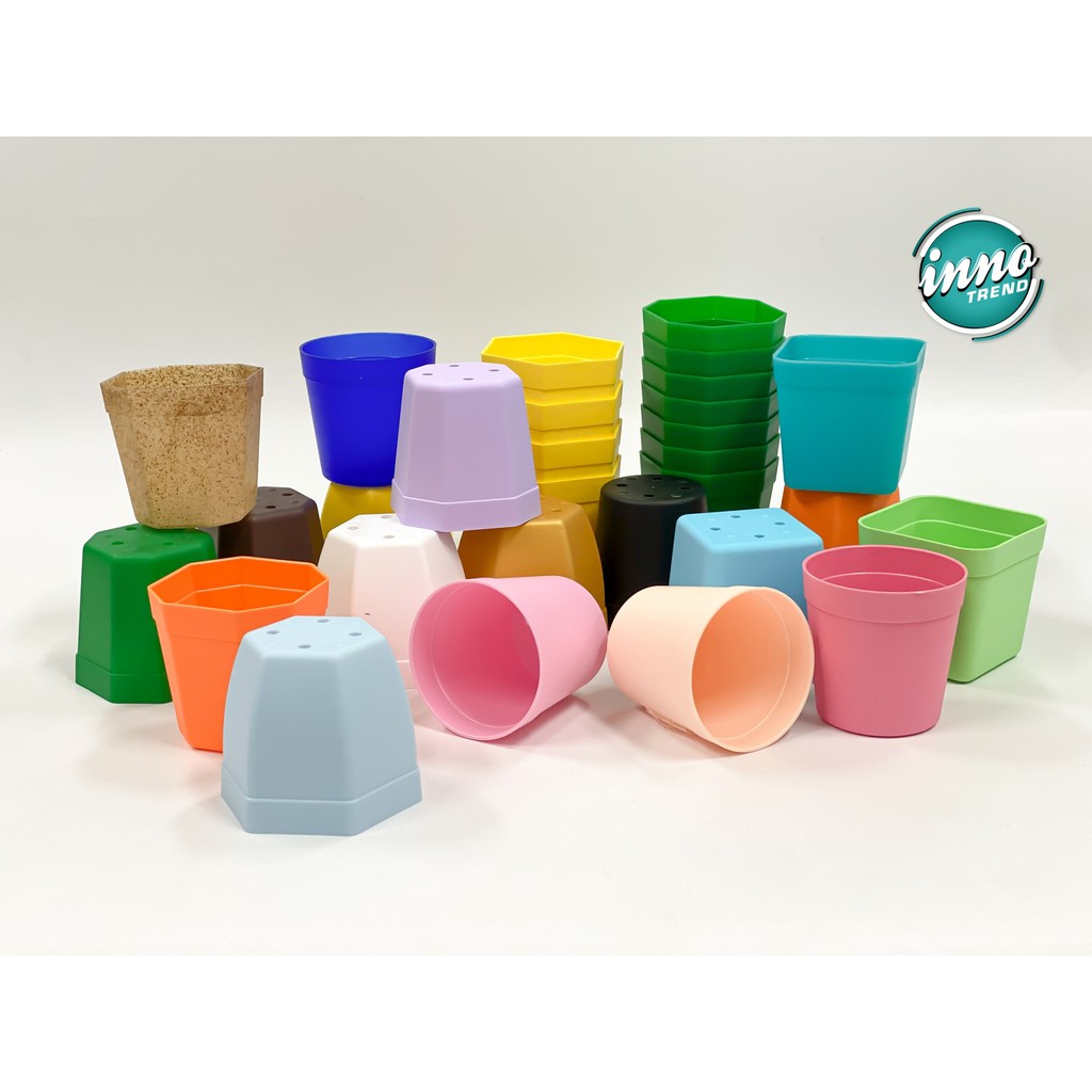กระถางต้นไม้พลาสติกหลากสี กระถางแคคตัส (ขนาด 2 และ 2.5 นิ้ว)