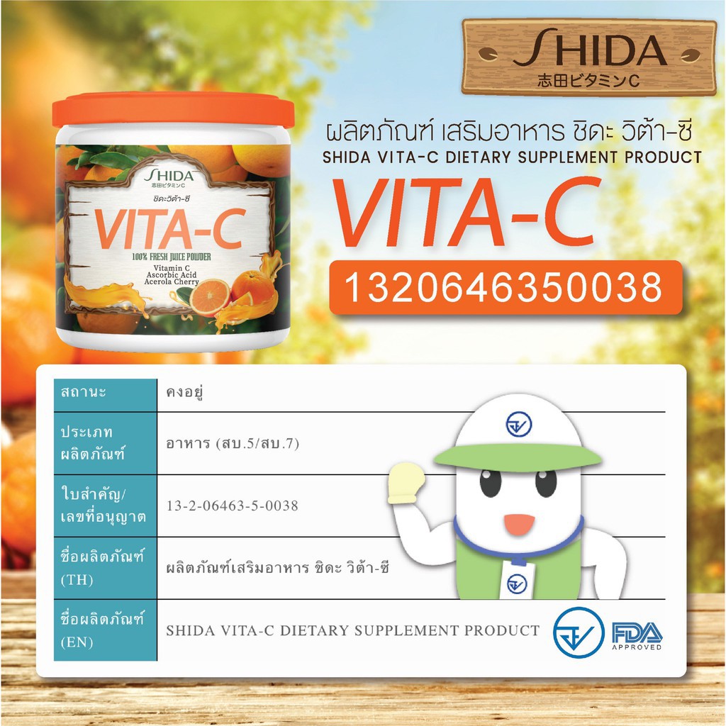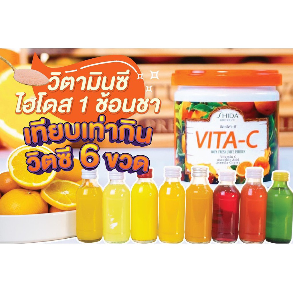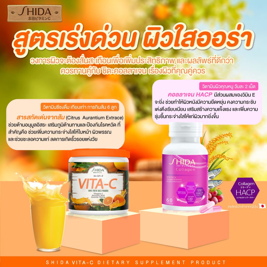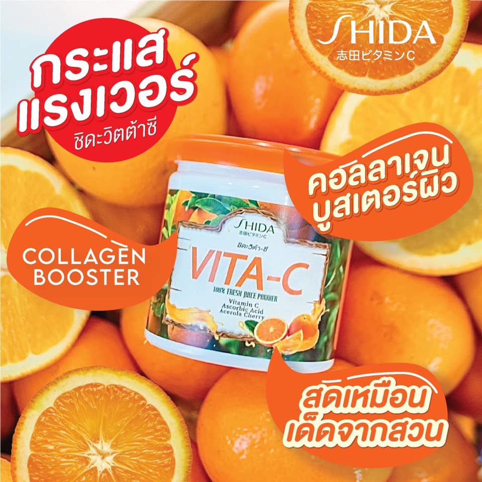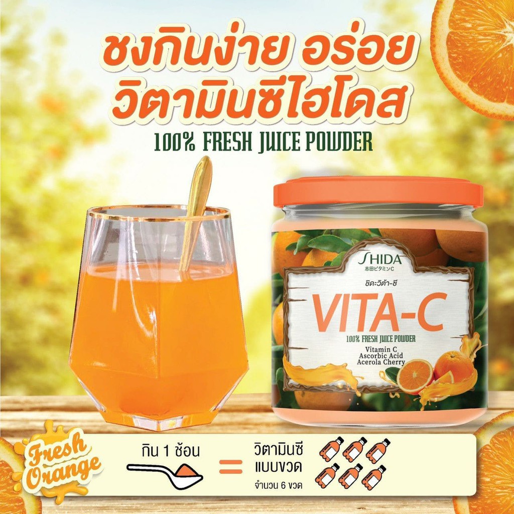 Shida Vita-C [50 กรัม/กระปุก] วิตามินซีไฮโดส คอลลาเจนบูสเตอร์ สารสกัดเข้มข้น วิตามินซี100% สูตรเด็ดผิวใส ชงง่าย ทานอร่อย