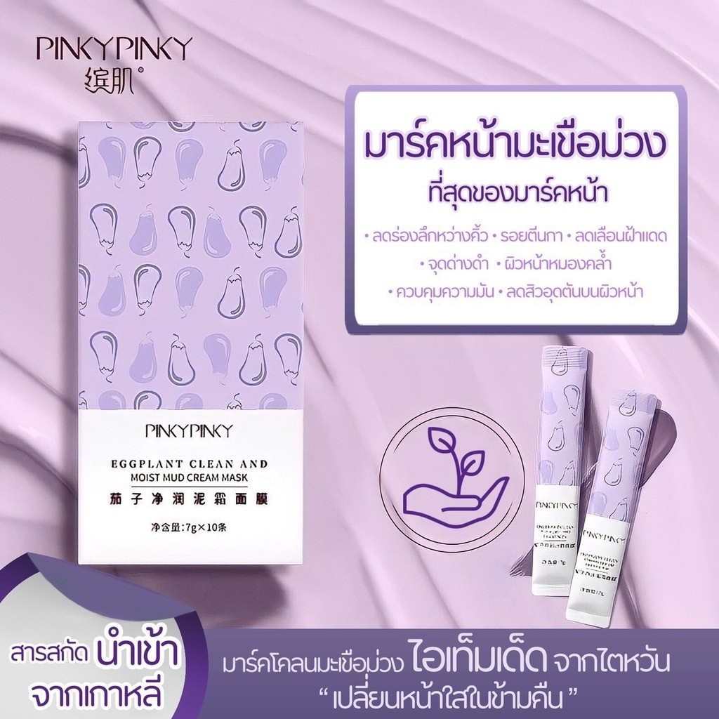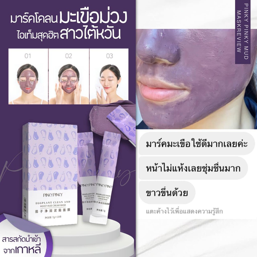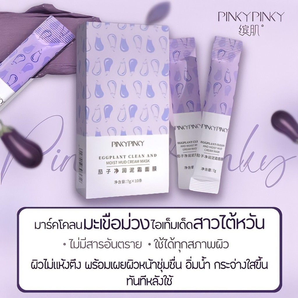 [1 กล่อง/10 ซอง] Pinky Pinky Eggplant Clean And Moist Mud Cream Mask มาส์กโคลนมะเขือม่วง ตัวดังจากไต้หวัน