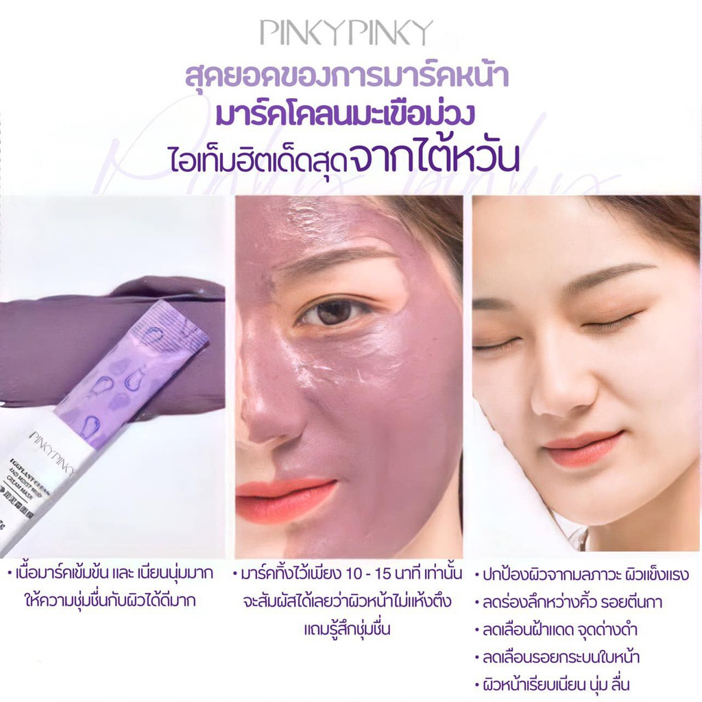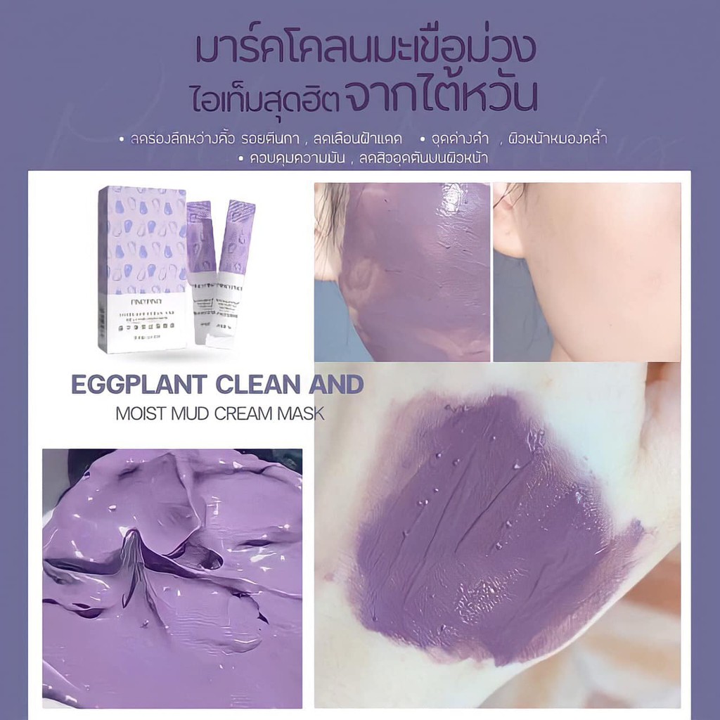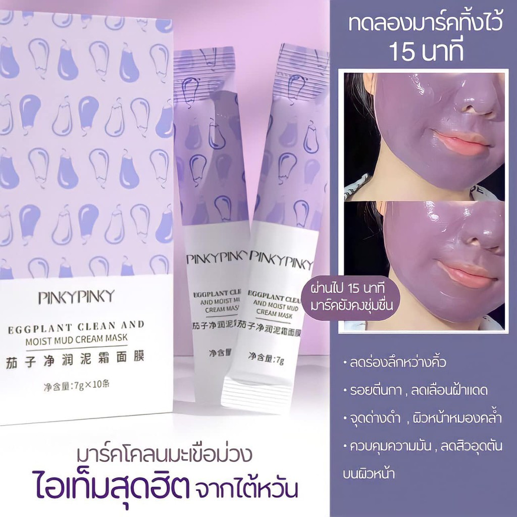 [1 กล่อง/10 ซอง] Pinky Pinky Eggplant Clean And Moist Mud Cream Mask มาส์กโคลนมะเขือม่วง ตัวดังจากไต้หวัน