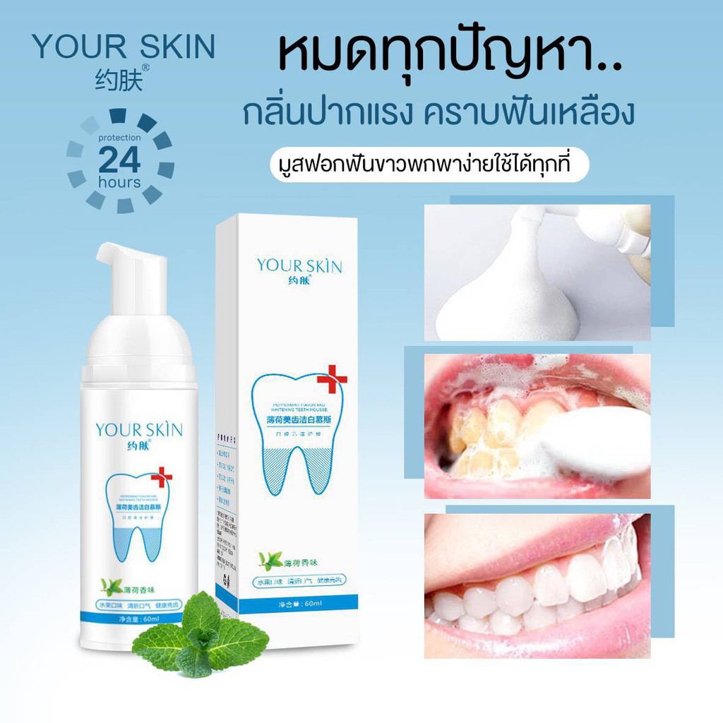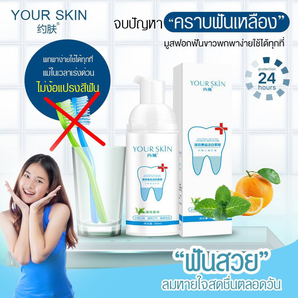 มูสฟันขาว Your skin Teeth Whitening Mousse Foam [60 ml.] [1 ขวด] ขจัดคราบ กลิ่นหอมสดชื่น มูสแปรงฟัน