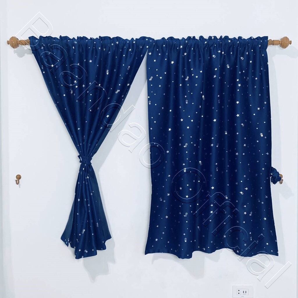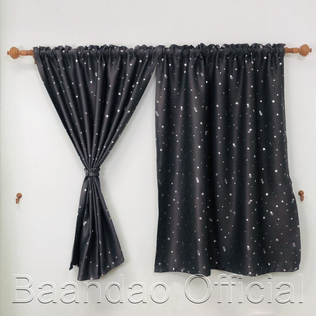[VAM4CZQV ลด20%] ผ้าม่านสอดลวดUV ผ้าหนา เนื้อดี ลายดาว