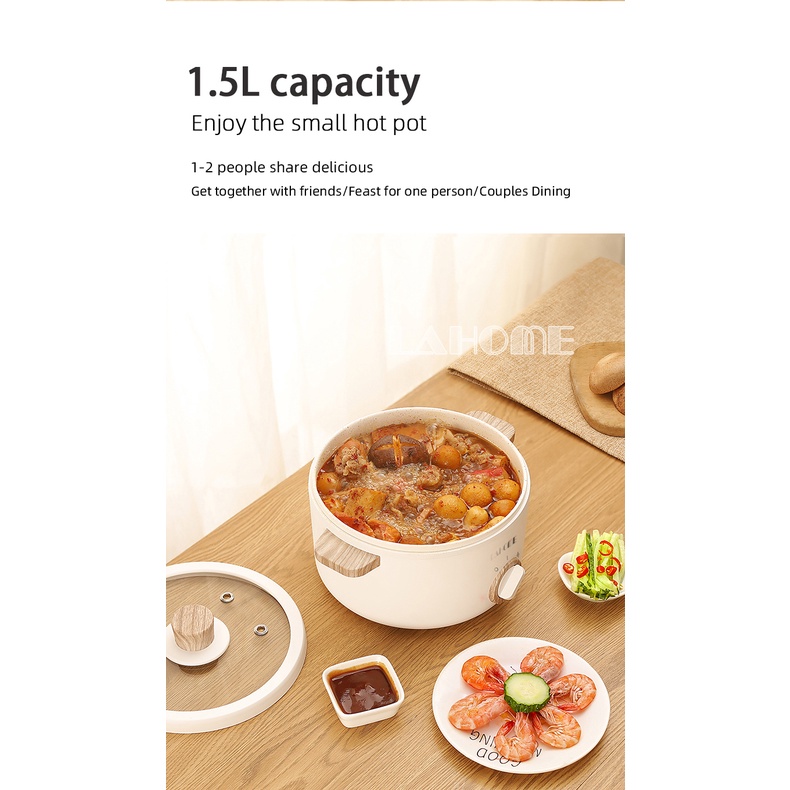 🎁 LAHOME 1.5Lหม้อไฟฟ้า อเนกประสงค์ ไม่ติดหม้อ 600W เหมาะสำหรับ 2-3 คน ควบคุมอุณหภูมิได้ 2 ปุ่ม A1502 หม้อไฟฟ้าขนาดเล็กมั