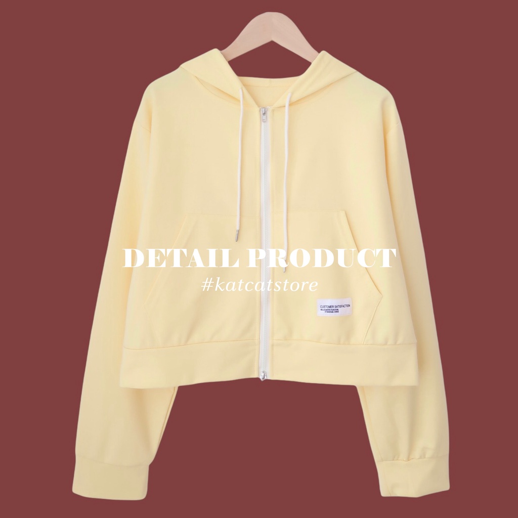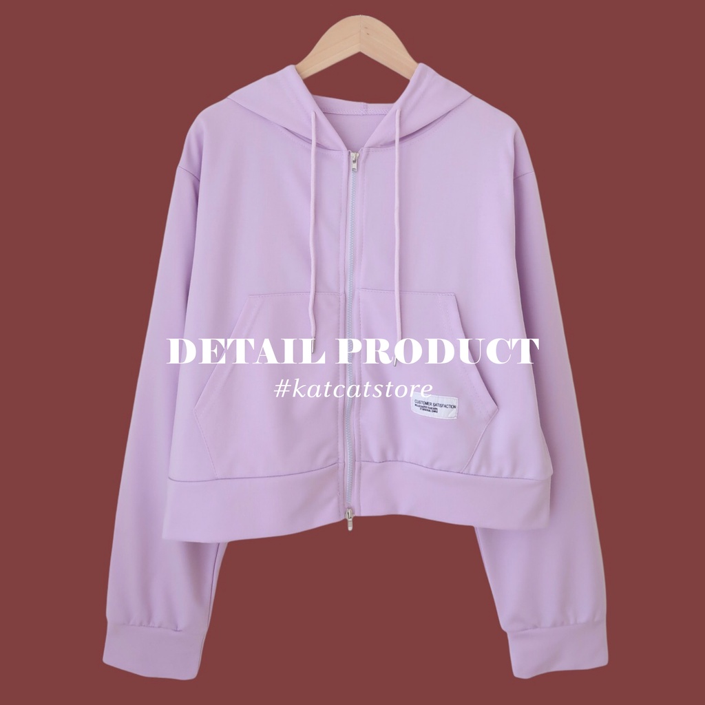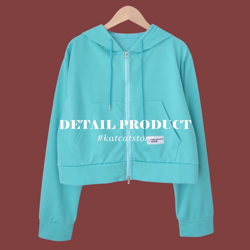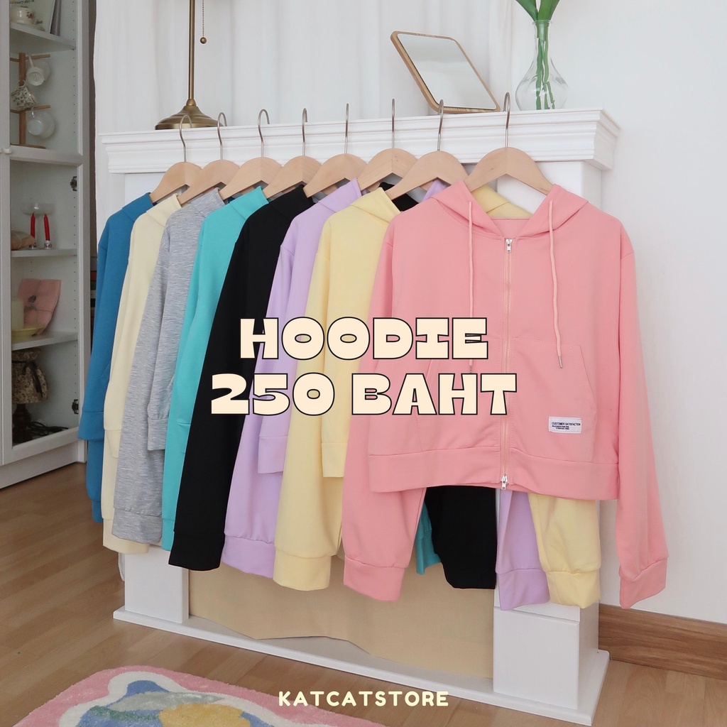 พร้อมส่ง เสื้อคลุมแขนยาวมีฮู้ททรงกึ่งครอป มี8สี มีกระเป๋าเก็บมือหน้า ซิปรูดได้สองทาง ดีเทลเย็บติดLabelสีขาว