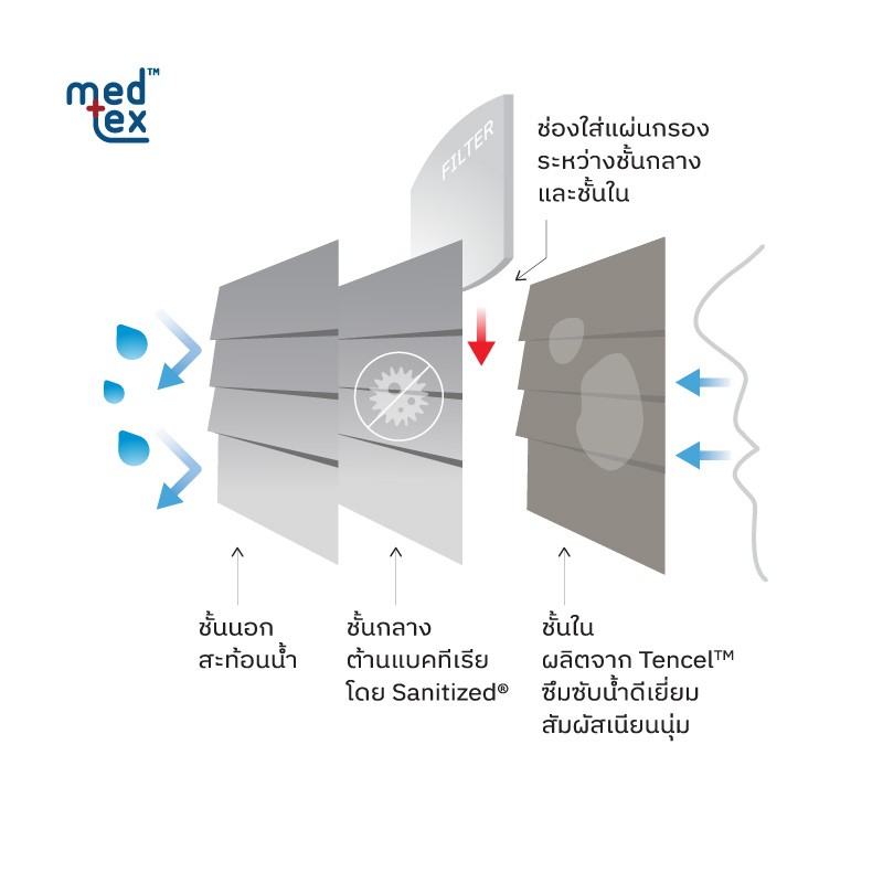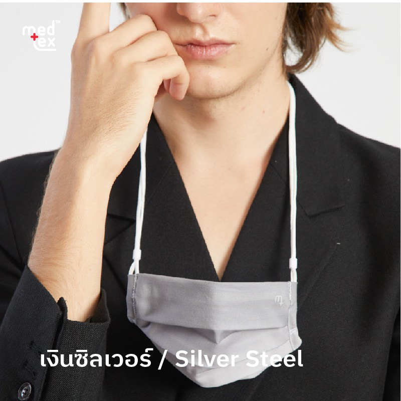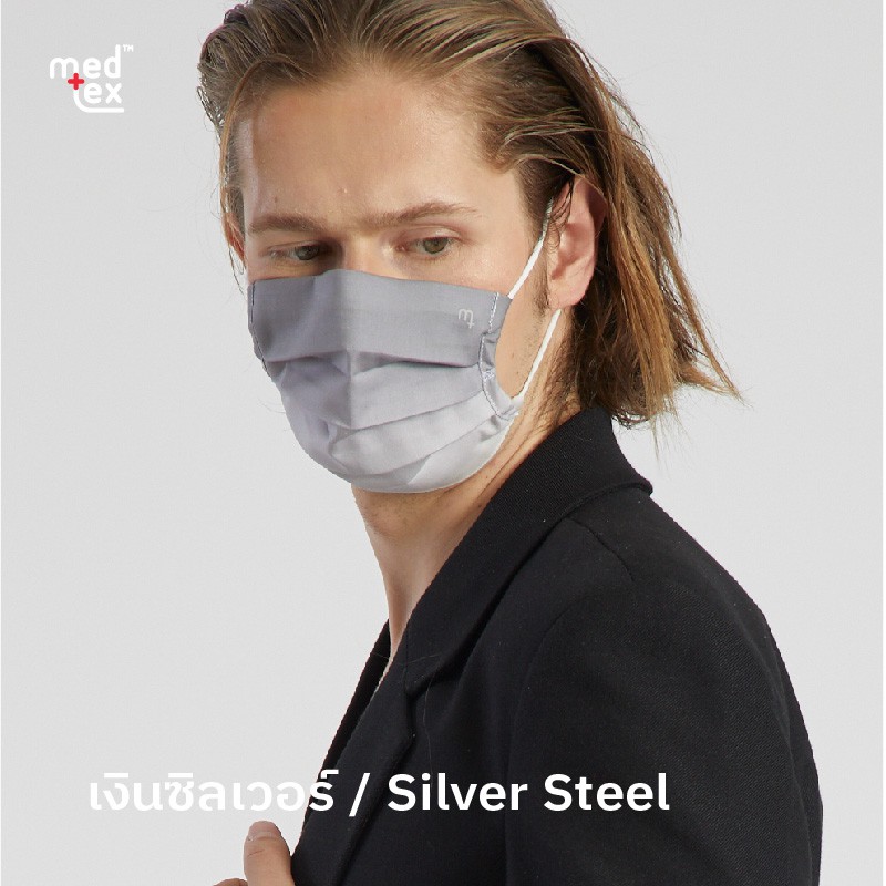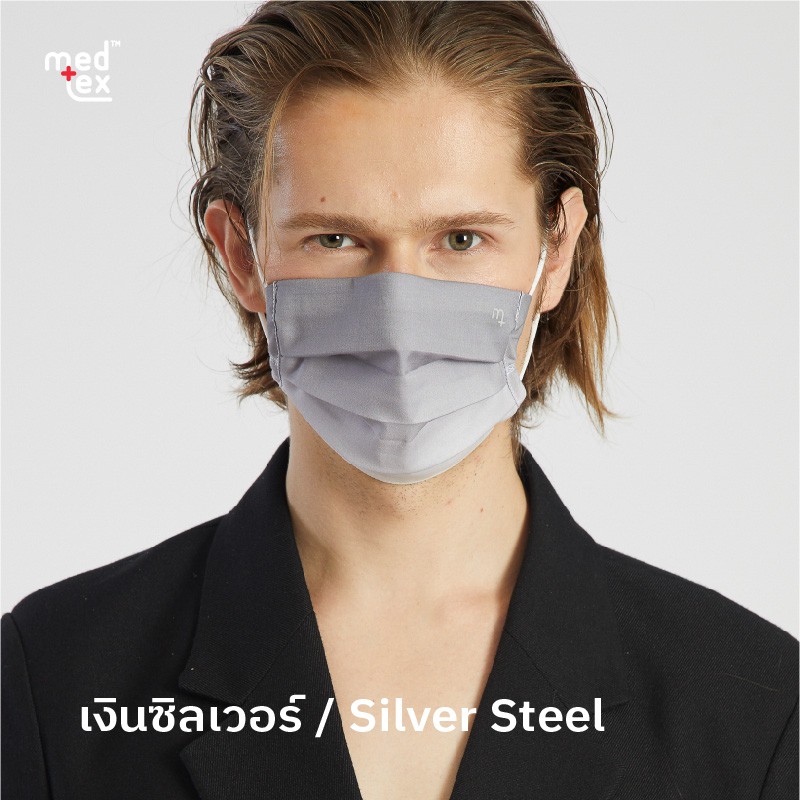 Medtex รุ่น M5 หน้ากากผ้ามัสลิน Tencel Cotton 3 ชั้น พร้อมช่องใส่ฟิลเตอร์ สีเงินซิลเวอร์