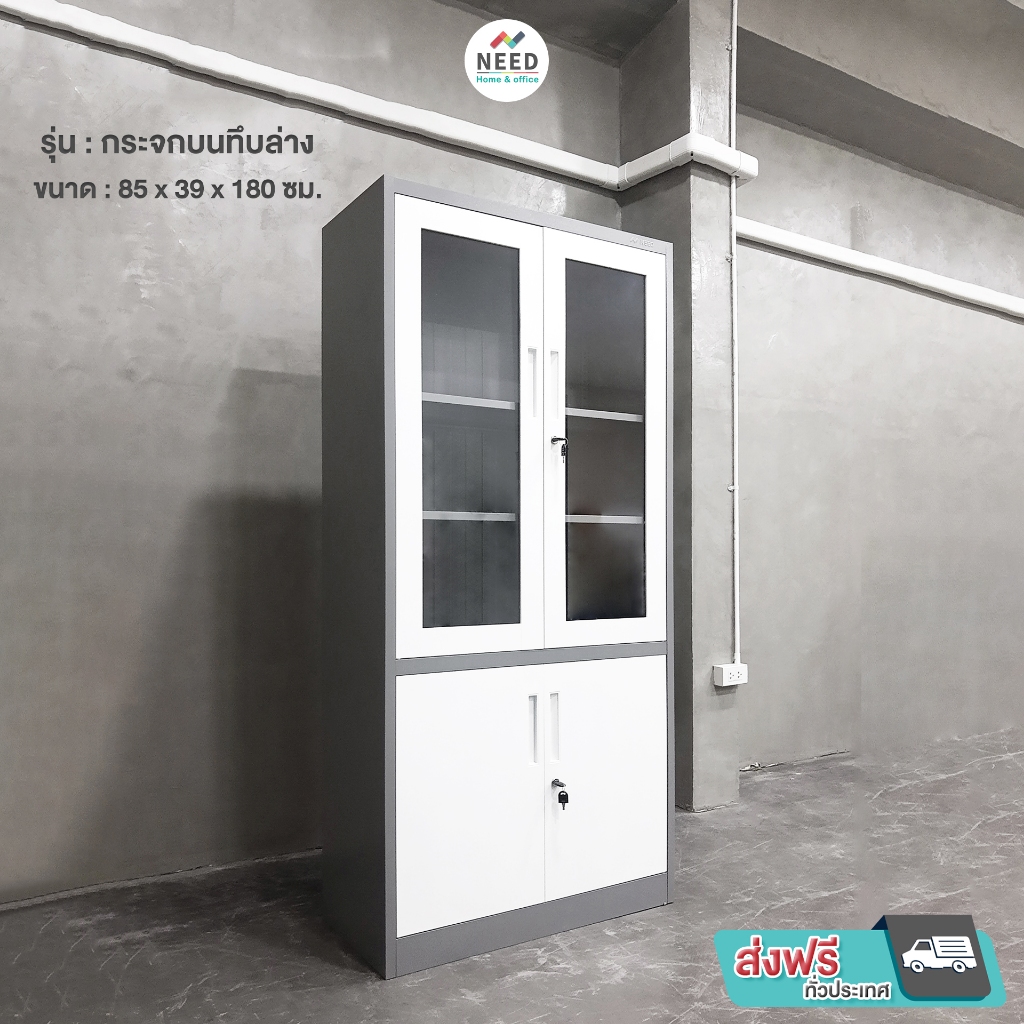 ลดพิเศษ🔥 ตู้เหล็กบานเปิดสูงบนกระจก-ทึบล่าง (จัดส่งฟรีทั่วประเทศ) หลายสี (ออกใบกำกับภาษีได้)