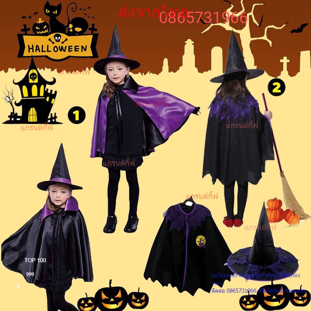 พร้อมส่ง 🧙♀️ ชุดฮาโลวีน เสื้อคลุมแม่มด พ่อมด ผ้าคลุมใส่ได้ทั้ง 2ด้าน พร้อมหมวกแม่มด