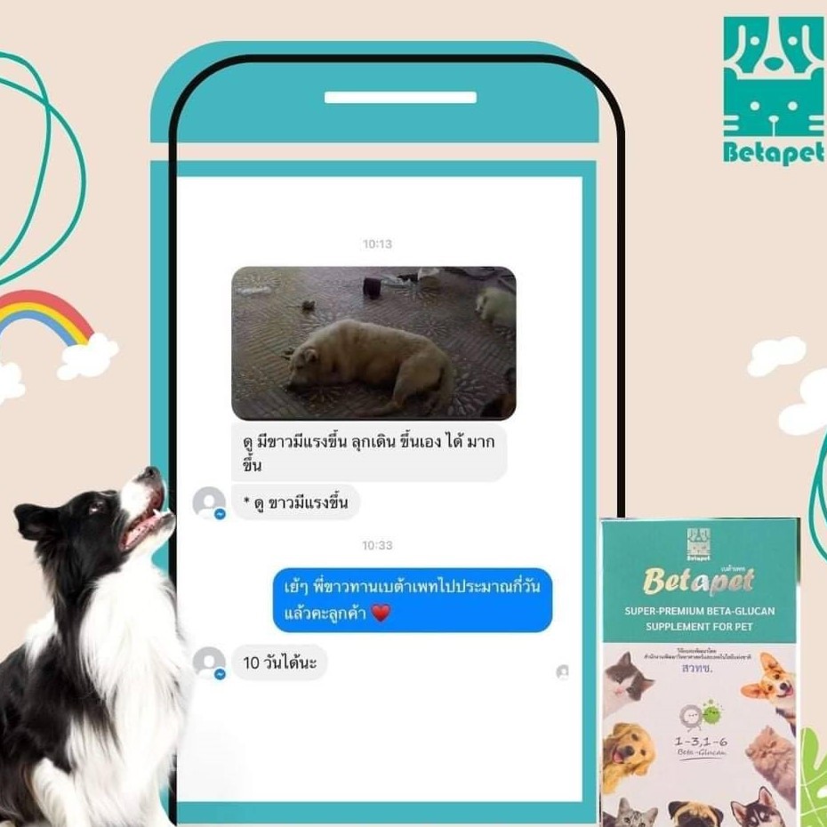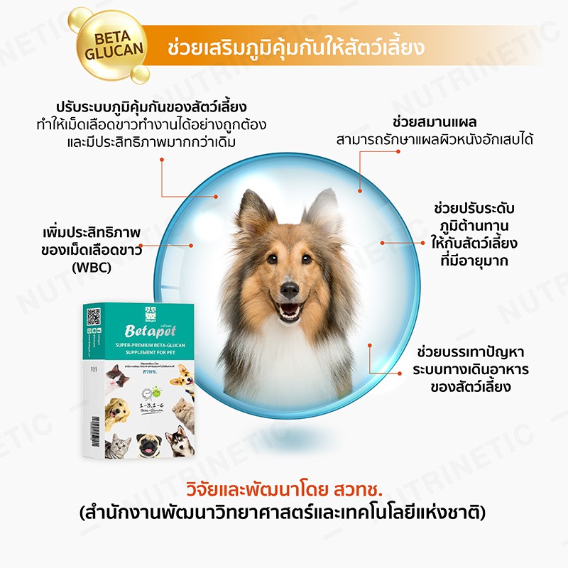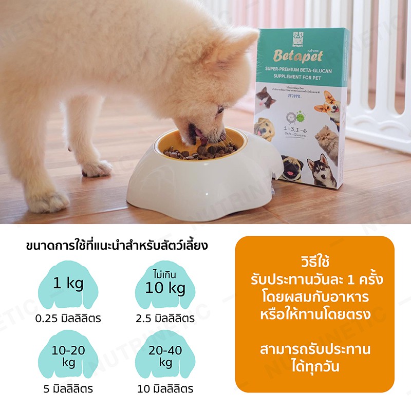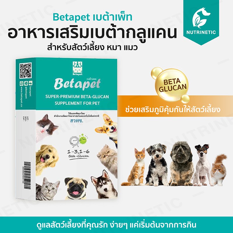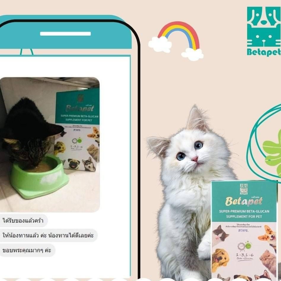 Betapet อาหารเสริมภูมิคุ้มกันจากเบต้ากลูแคน งานวิจัยจาก สวทช. สำหรับสัตว์เลี้ยง หมา แมว 100ml