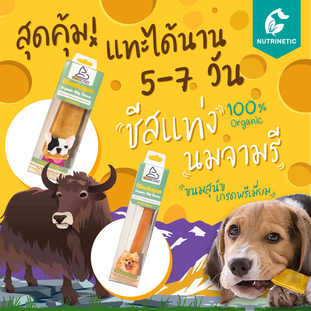 Chewmate ขนมชีสแท่งขัดฟัน เกรดพรีเมี่ยมจากนมจามรี [ของแท้] สินค้านำเข้า แทะได้นานมาก