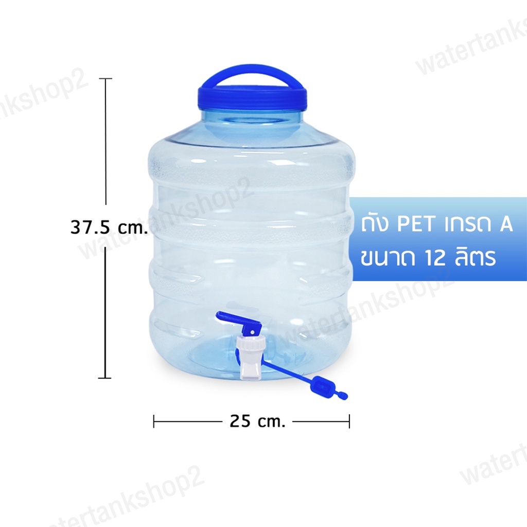 ++Watertankshop ถังน้ำ ถังน้ำดื่ม ขนาด 12 ลิตร ถังน้ำมีก๊อกพร้อมหูหิ้ว ลาย 1X