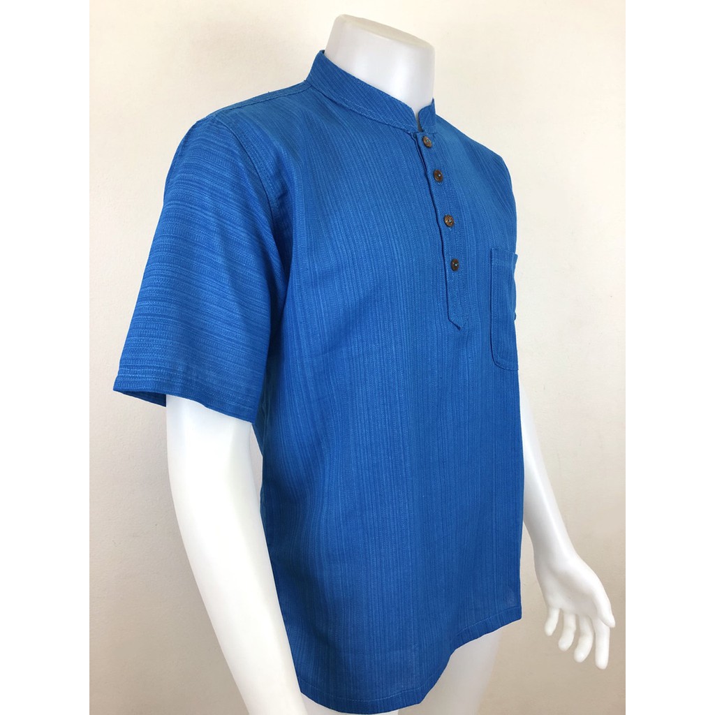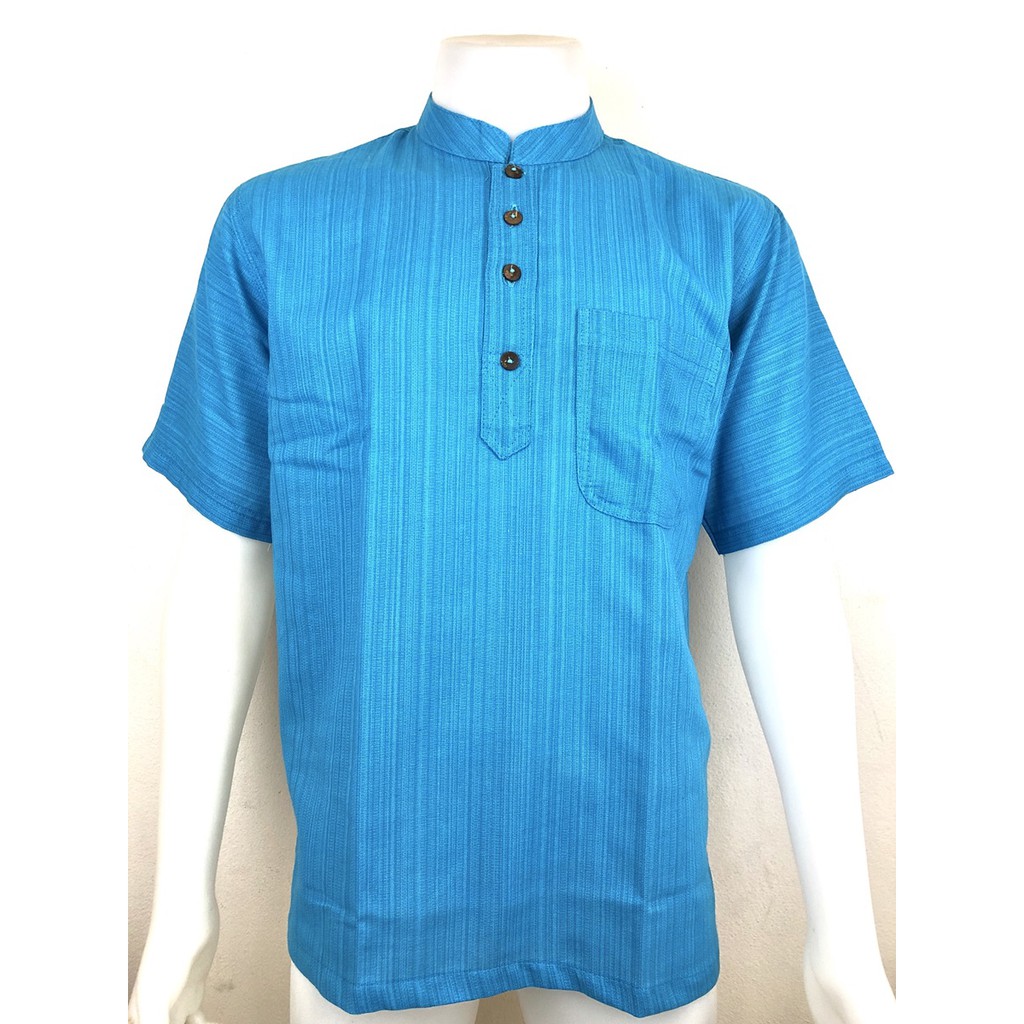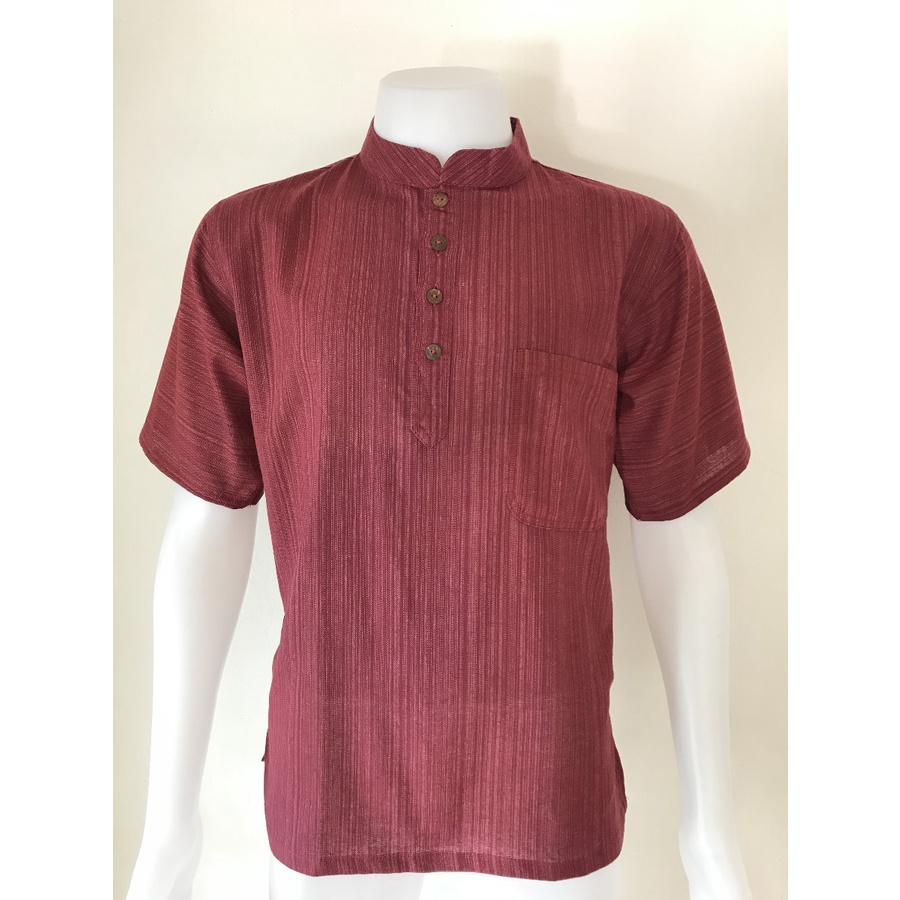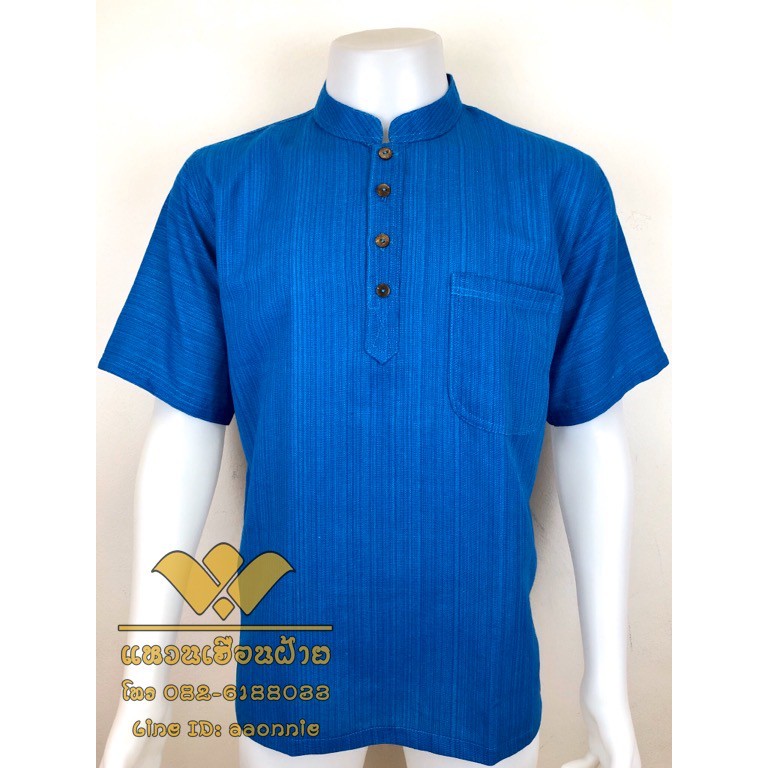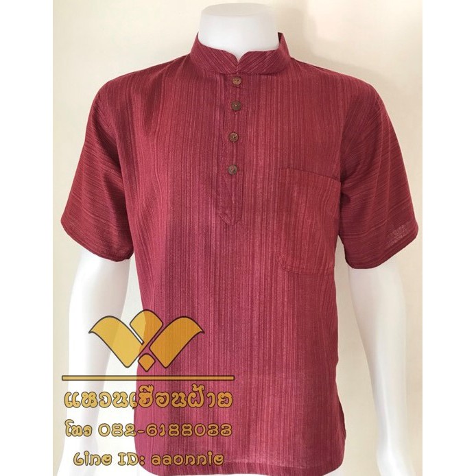 เสื้อผ้าฝ้าย ผ้าพื้นเมือง (TC) คอจีน กระดุมกะลา 4 เม็ด แขนสั้น